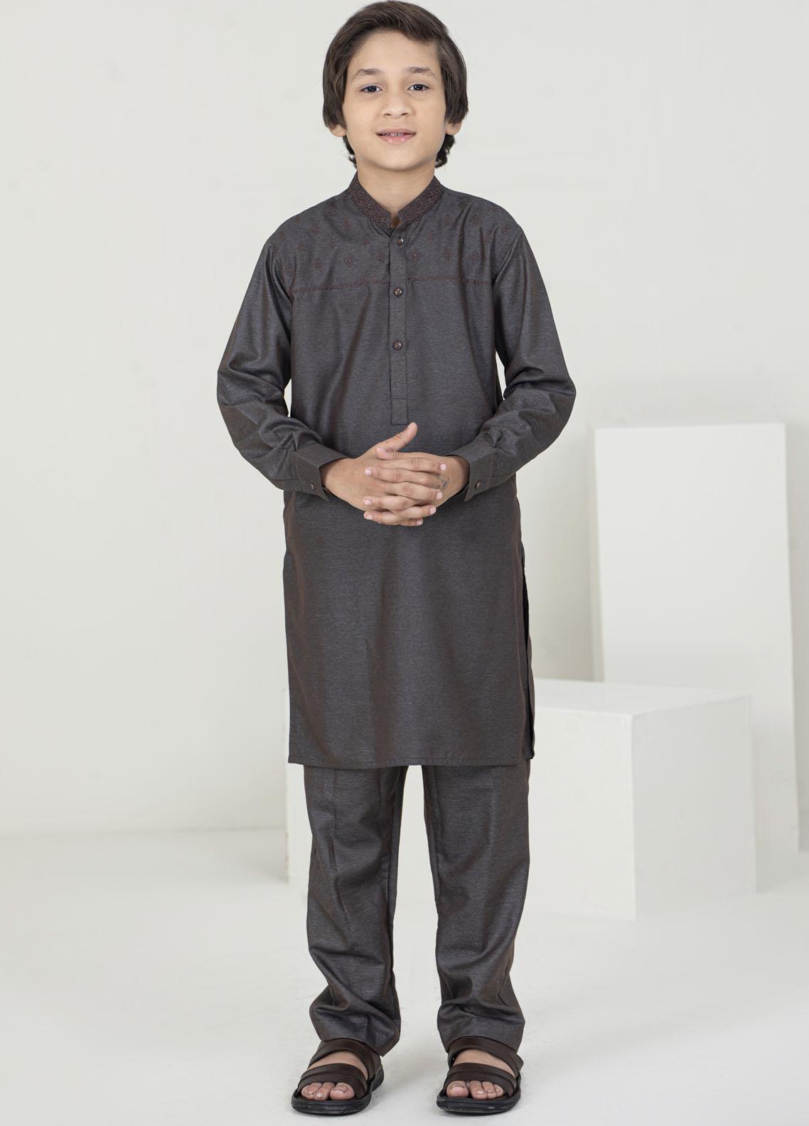 Stylish Wash N Wear Fancy Kurta Pajama for Kids - K-1972 CHOCOLATY