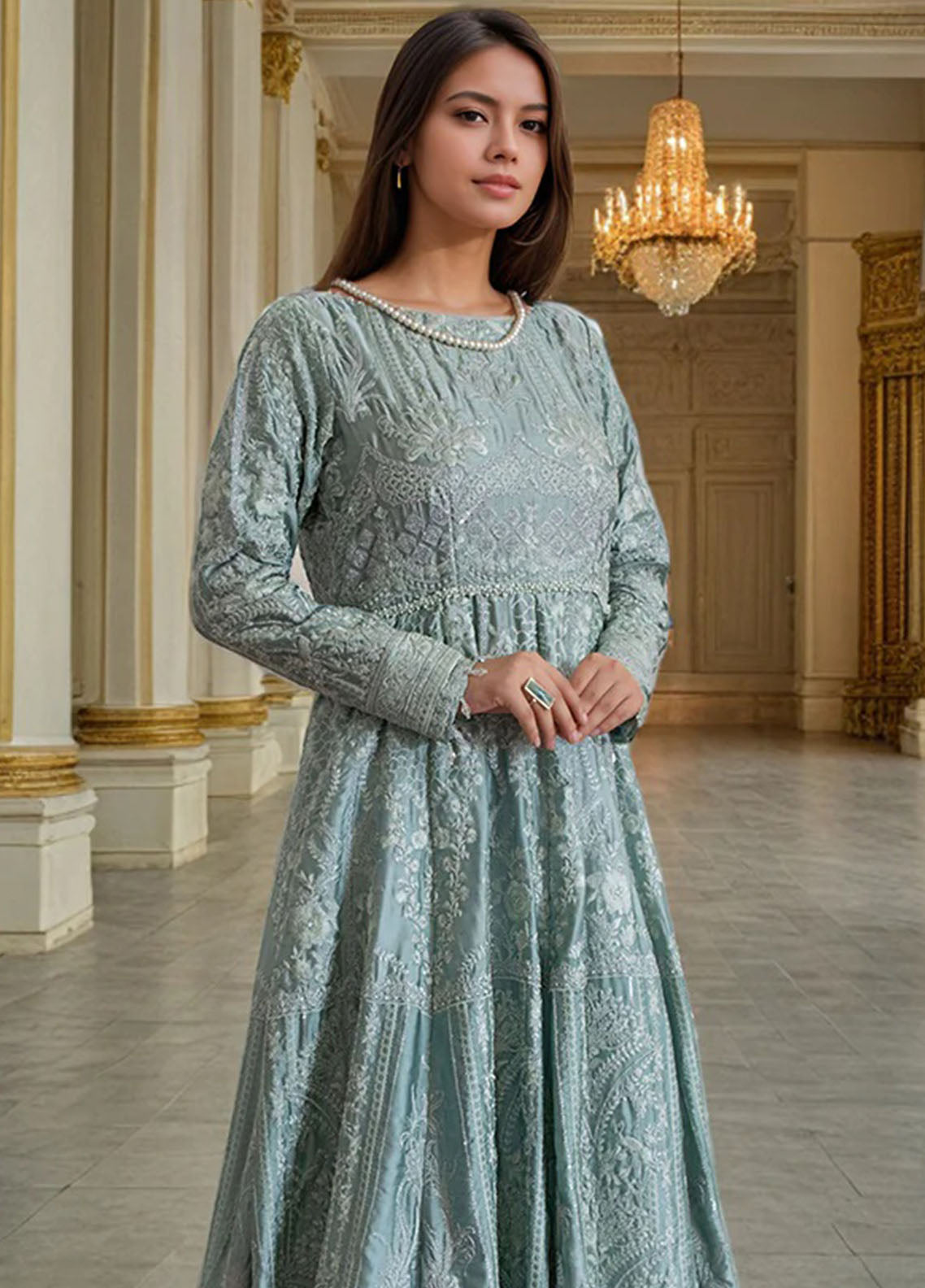 Thread and Motifs Pret Embroidered Chamois 1 piece Suit 9366.1