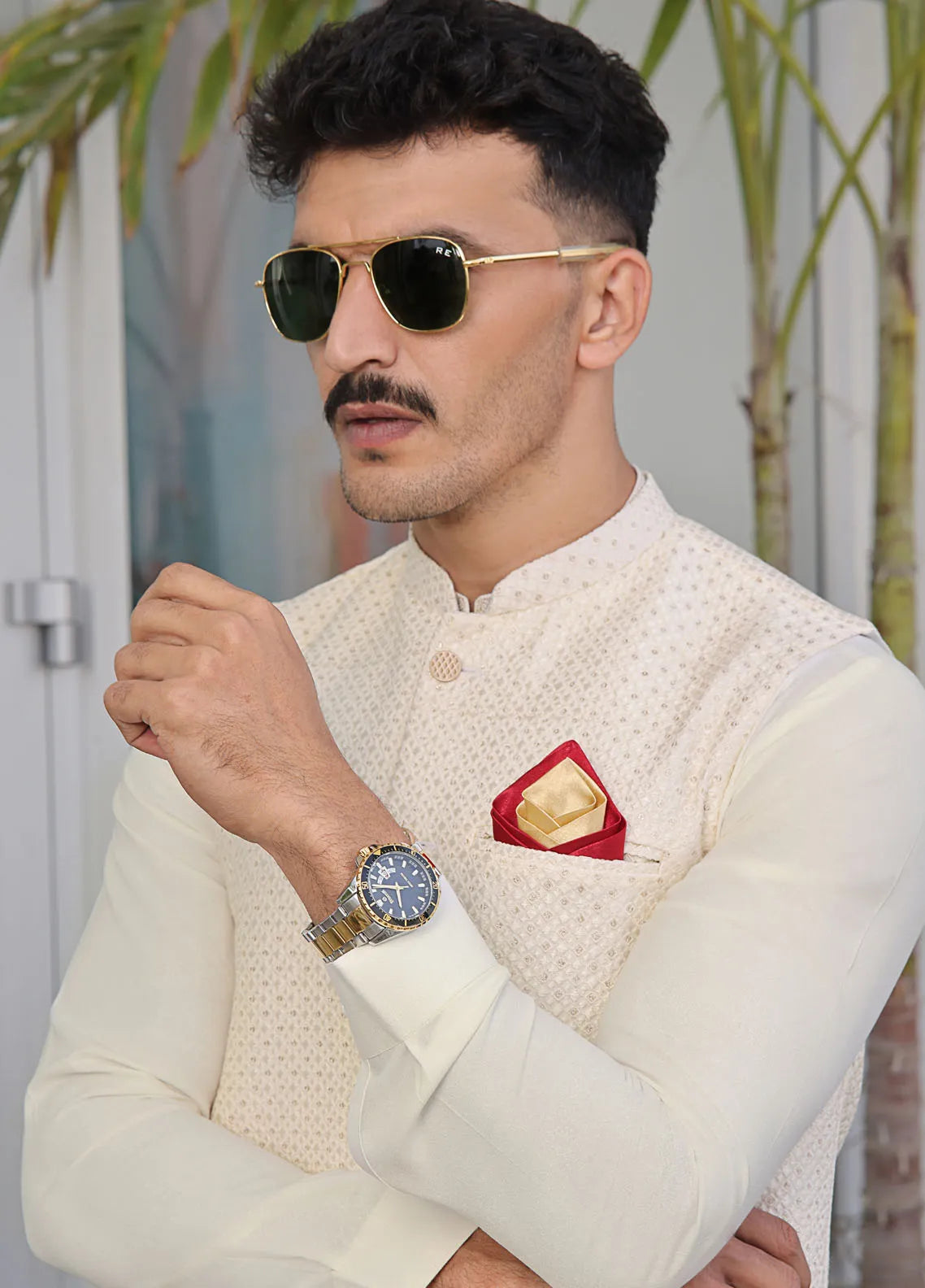 Mens Formal Raw Silk Waistcoat with Embroidery