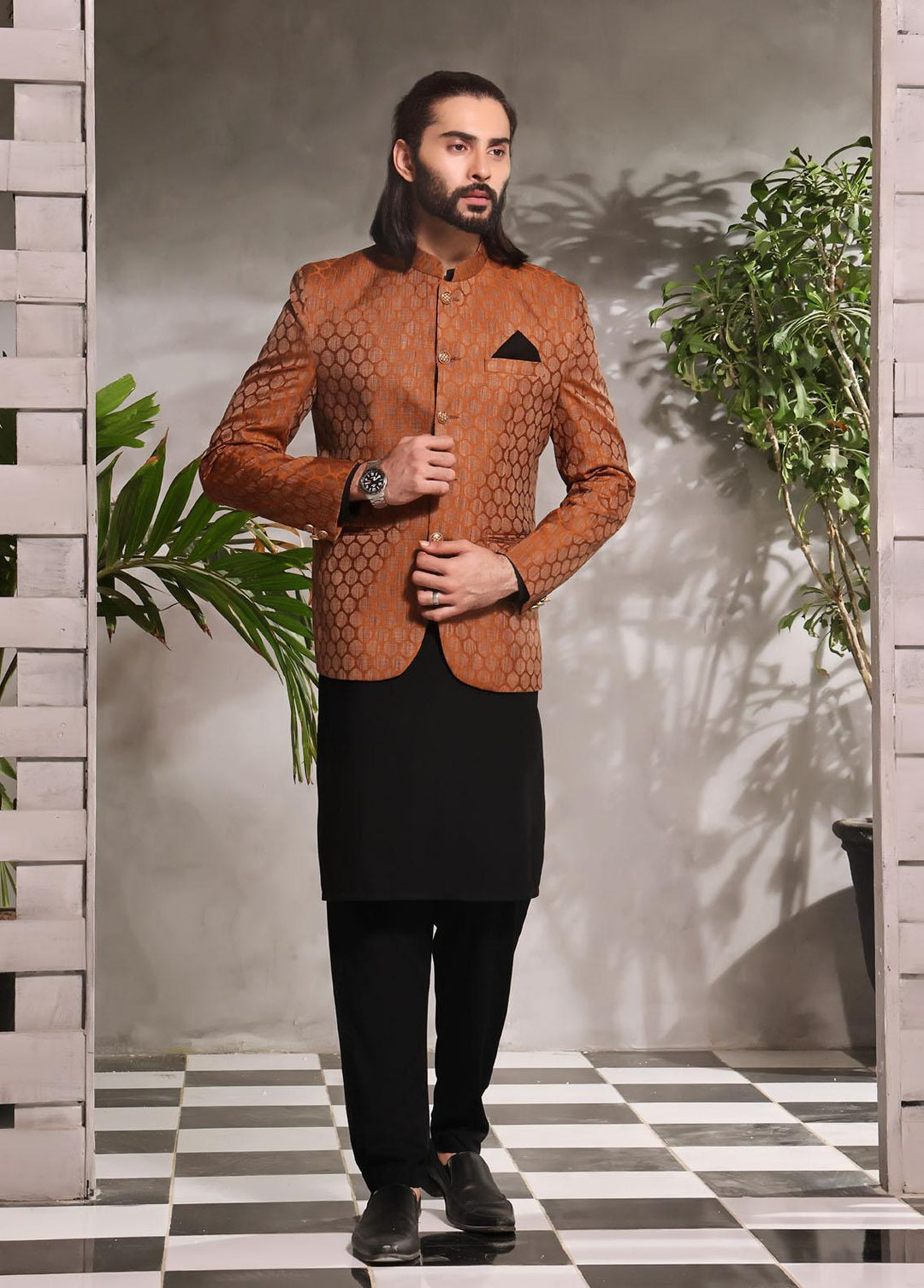 The Great Master (TGM) Jamawar Fancy Men Kameez Shalwar - Walnut Elegance