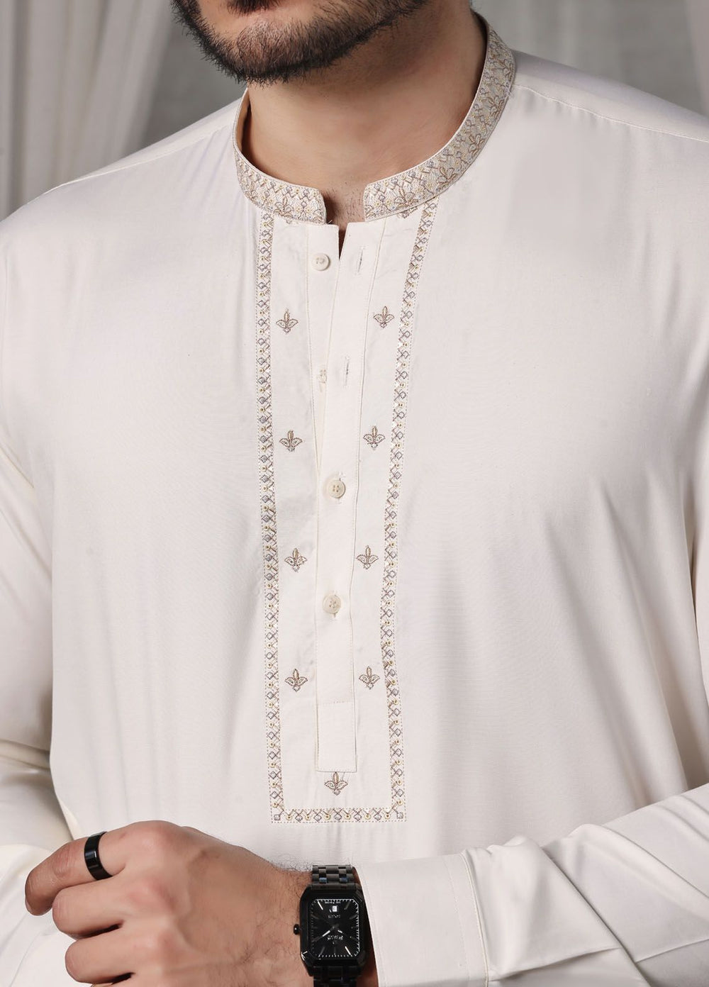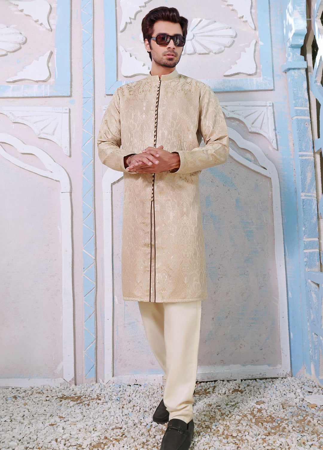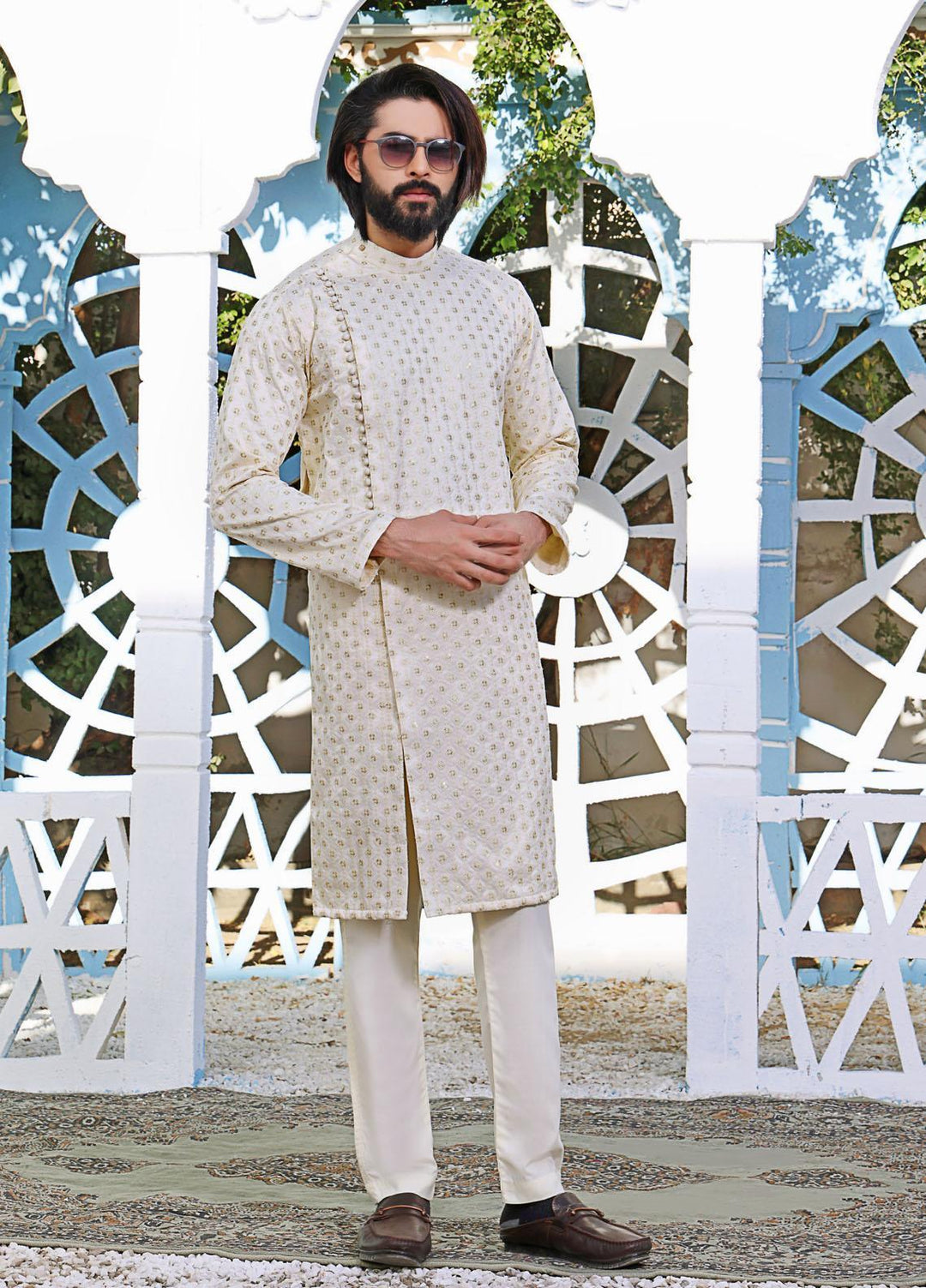 The Great Master (TGM) Jamawar Fancy Kameez Shalwar for Men - Vanilla Desire