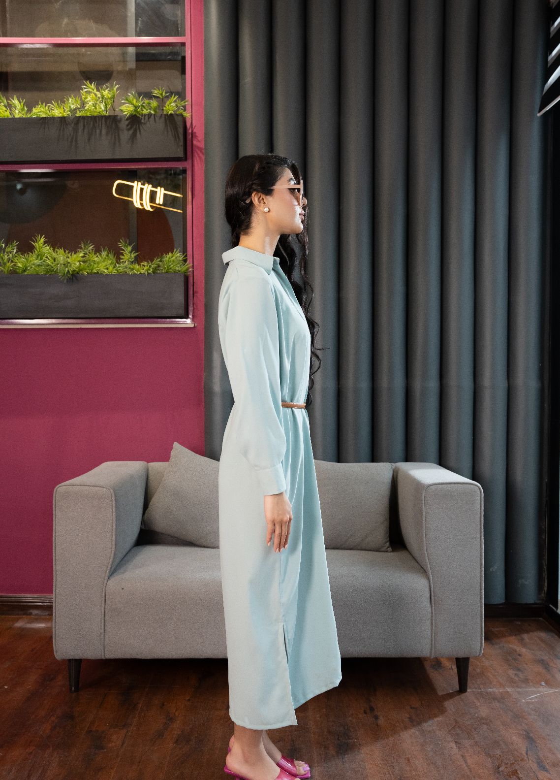 Featuring a classic collar, full-length silhouette, and cuff sleeves, this Cloude dress is a timeless addition to your workwear wardrobe. (Belt Not Included)