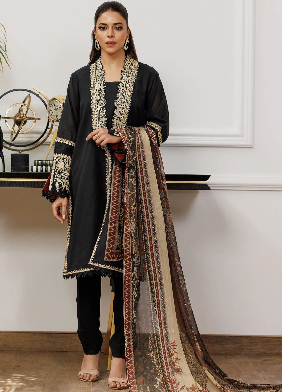 Embroidered Pret Chanderi 3 Piece Suit