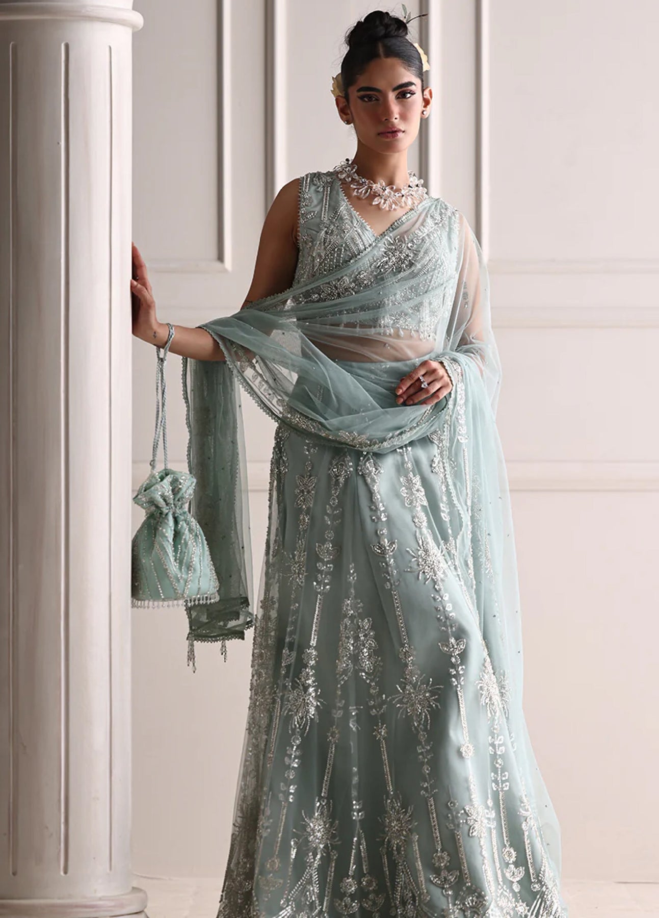 Threads And Motifs Women Pret Net Embroidered Blouse And Lehenga With Dup 3 Piece 9941 - Formals Collection