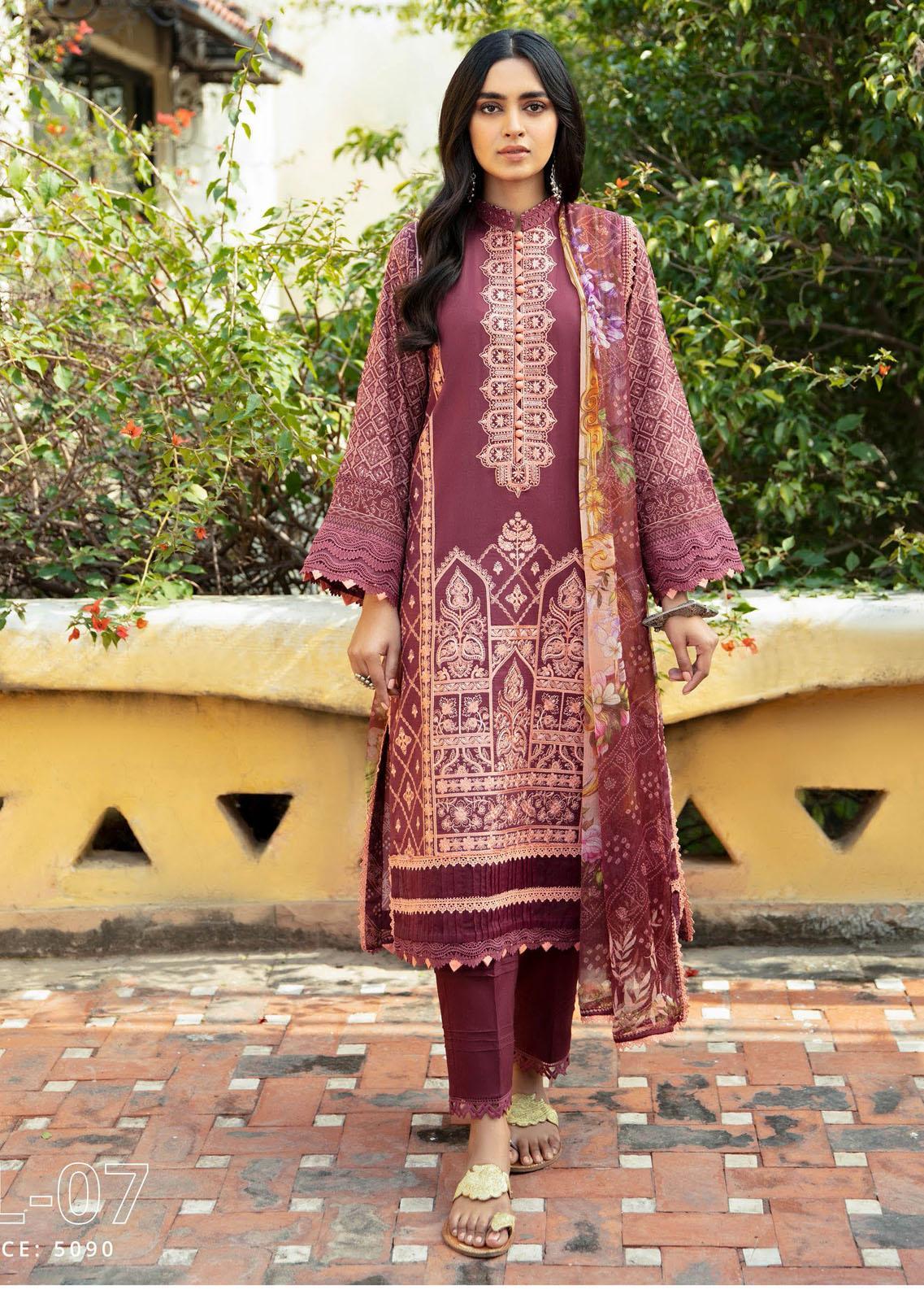 Aabyaan Embroidered Lawn Suits Unstitched 3 Piece ABY22L AL-06 Nazish - Luxury Collection