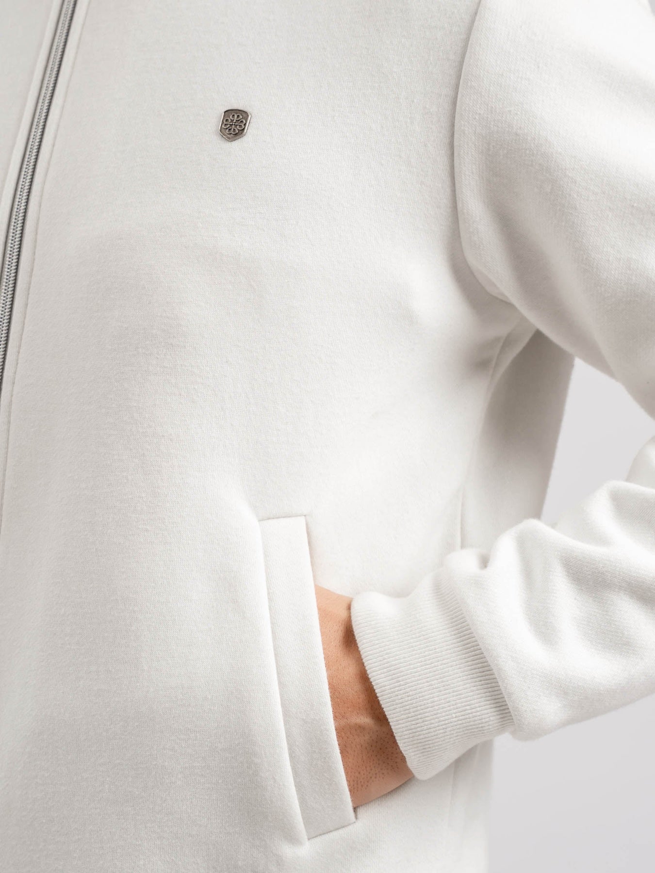 A modern twist on a classic bomber style. Crafted from soft knitted fabric, this vanilla jacket features a sleek zip-up front, ribbed trims, and a comfortable fit. Perfect for layering in any season.