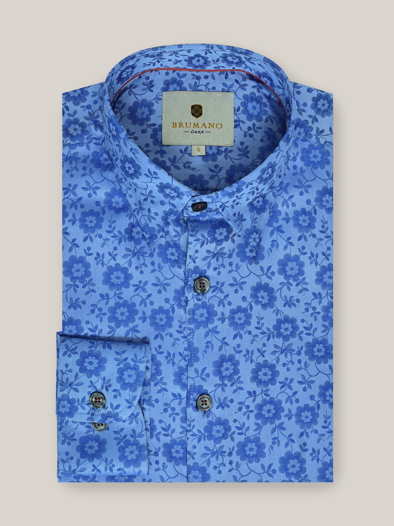 Brumano Ready To Wear Shirts Men 1 Piece Cotton Blue Floral Printed Jacquard Shirt 0-32-023-2086 - Summer Collection