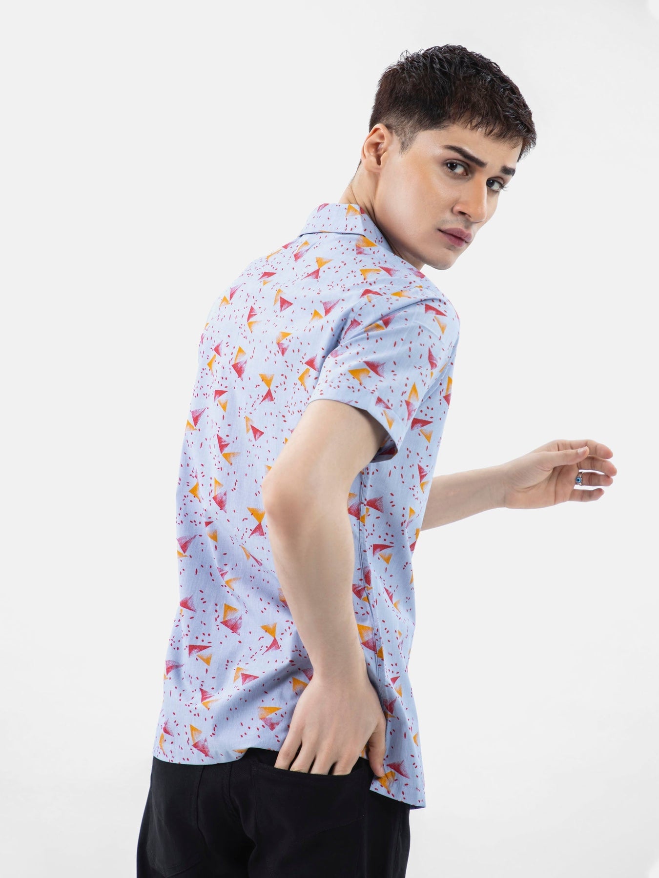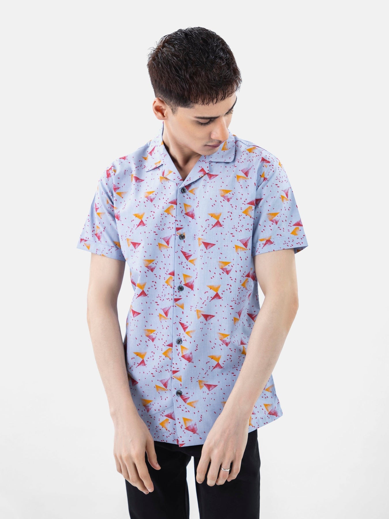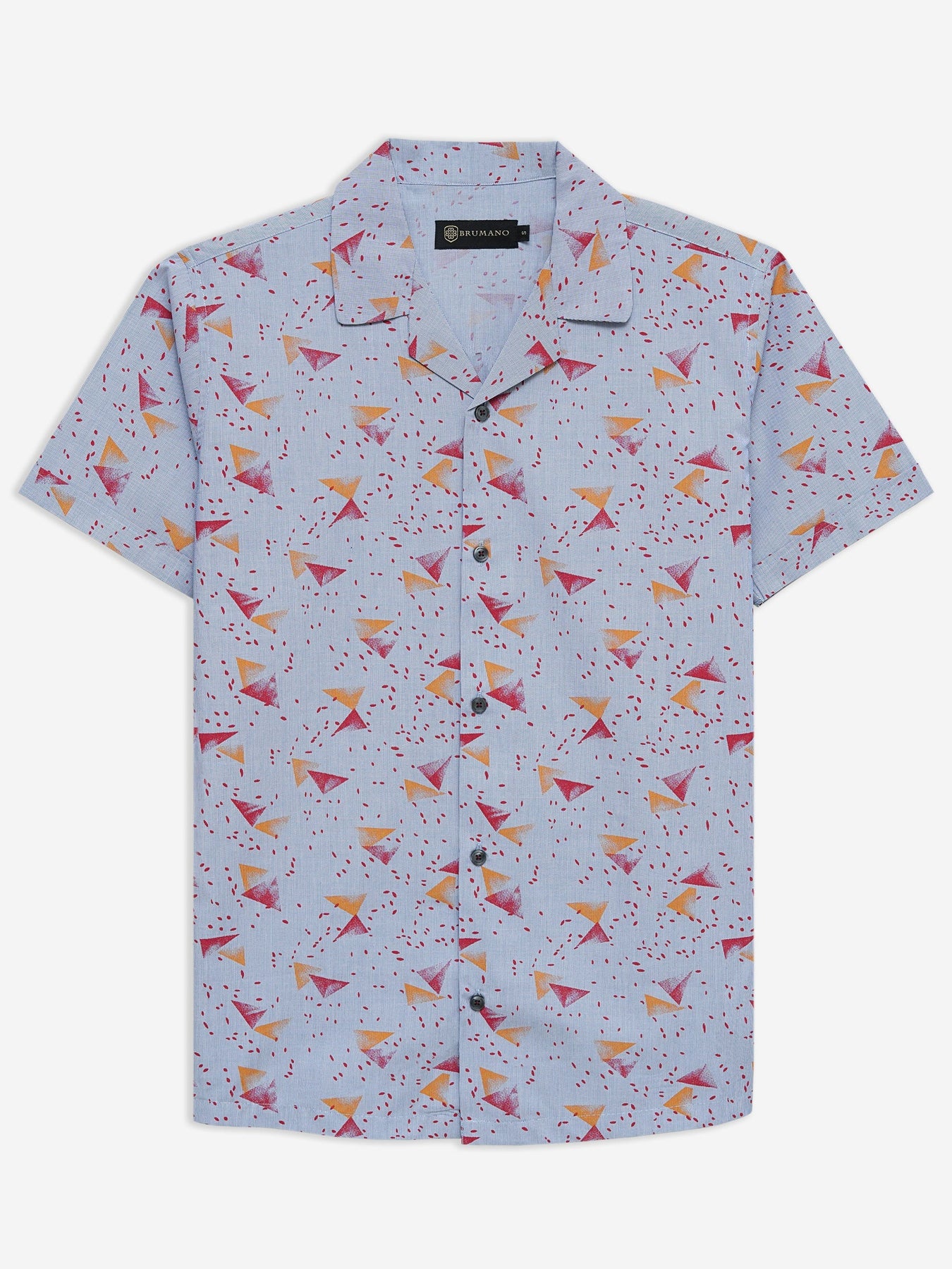 Brumano Ready To Wear Shirts Men 1 Piece Cotton Blue & Red Abstract Printed Half Sleeve Cuban Collar Shirt 0-33-024-3237 - Summer Collection