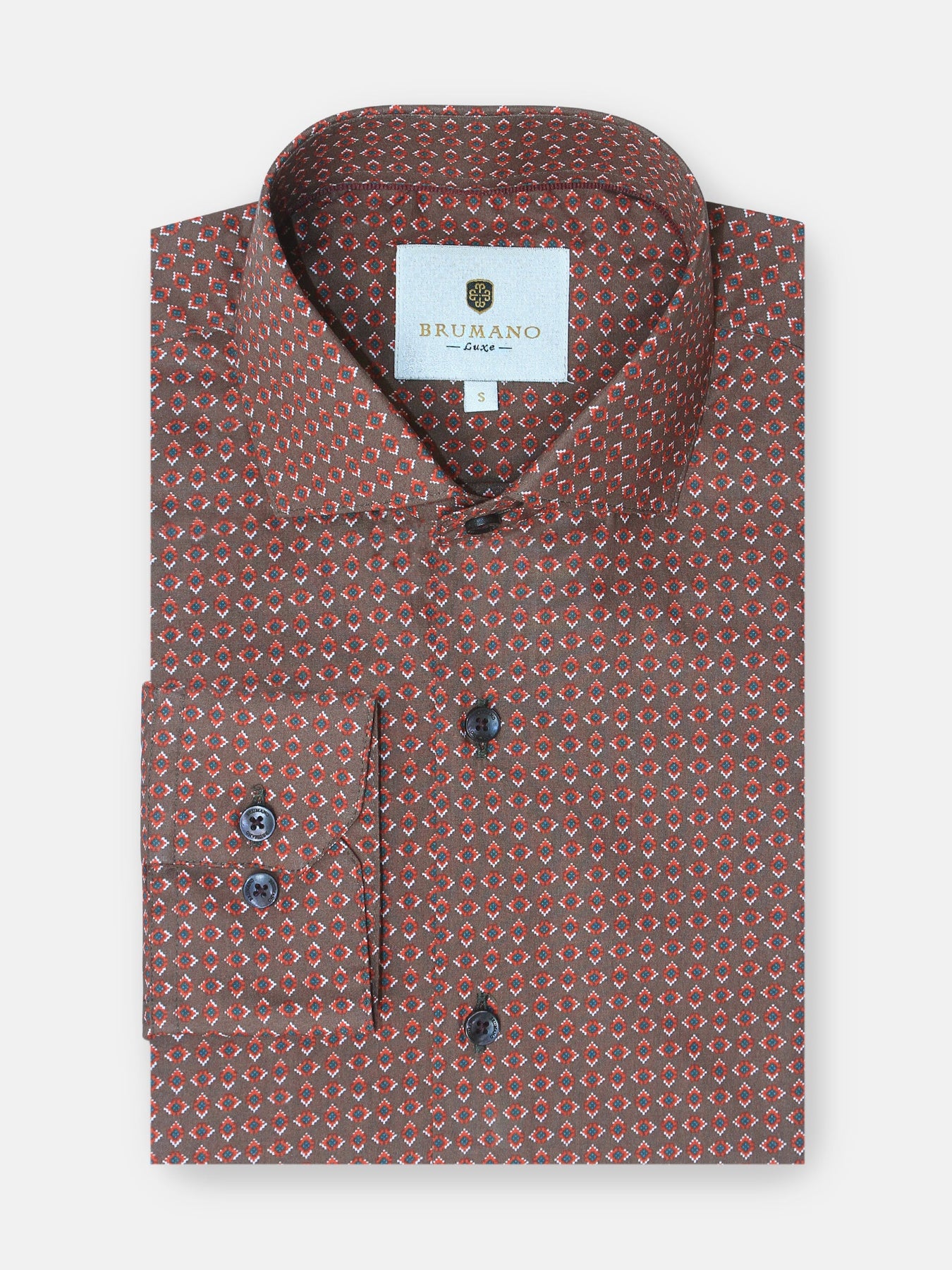 Brumano Ready To Wear Shirts Men 1 Piece Cotton Brown & Red Geometric Printed Shirt 0-32-024-3304 - Summer Collection