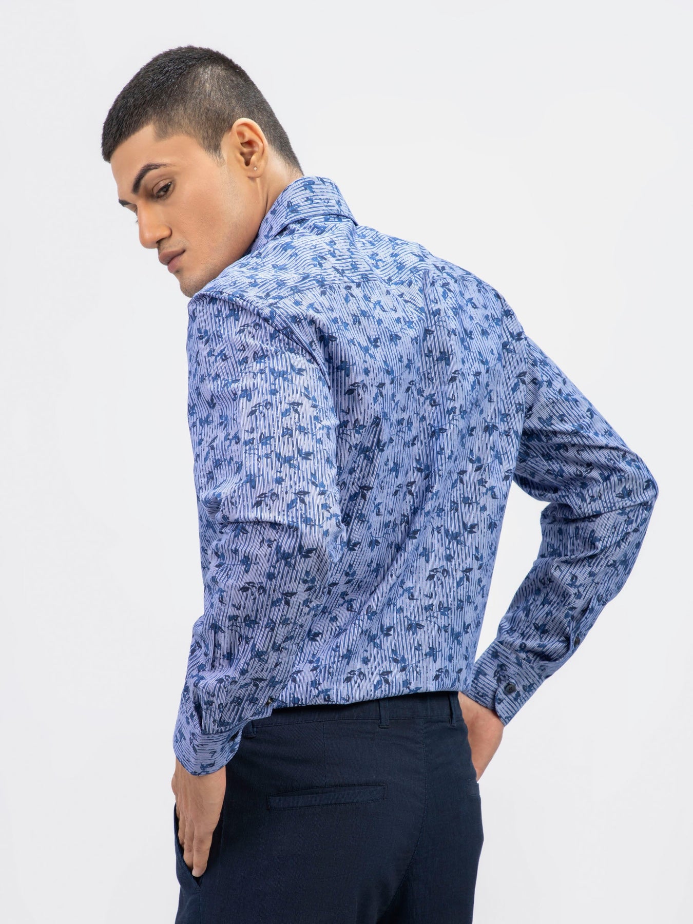 Add a pop of color to your summer wardrobe with our purple printed shirt, featuring a subtle abstract print. Full sleeves, classic collar & inner collar ribbon detailing completes the look of this smart casual shirt. Pair it with navy blue or black chinos to pull off a dapper look