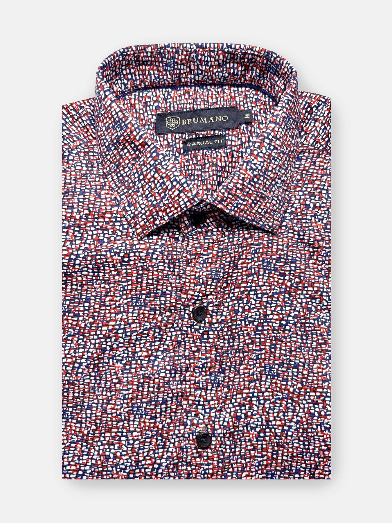 Brumano Ready To Wear Shirts Men 1 Piece Cotton Red & Blue Abstract Printed Shirt 0-31-025-3644 - Summer Collection