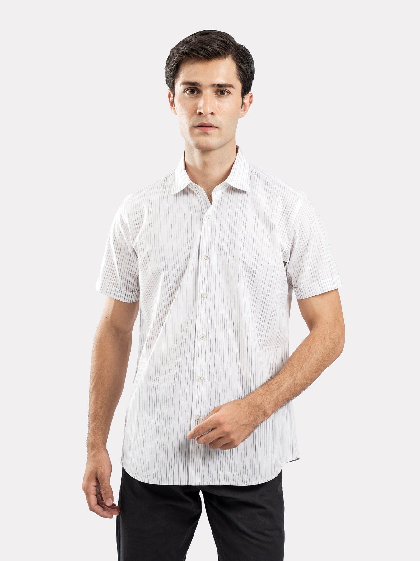 A crisp and refined choice with classic stripes, tailored for comfort and polished style. Perfect for formal settings while keeping you cool and sharp. Finished in half sleeves style.