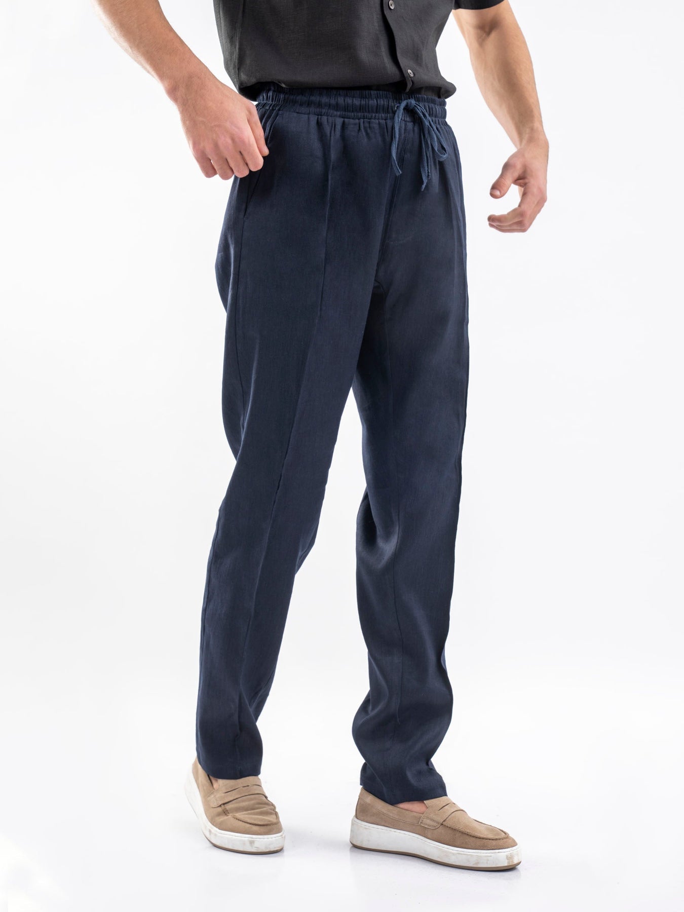 Experience ultimate comfort with our men's navy blue pajama trouser, crafted from 100% breathable linen. Lightweight and stylish, it features a relaxed fit to ensure that you stay comfy on hot day. Perfect for lounging, casual outing or traveling