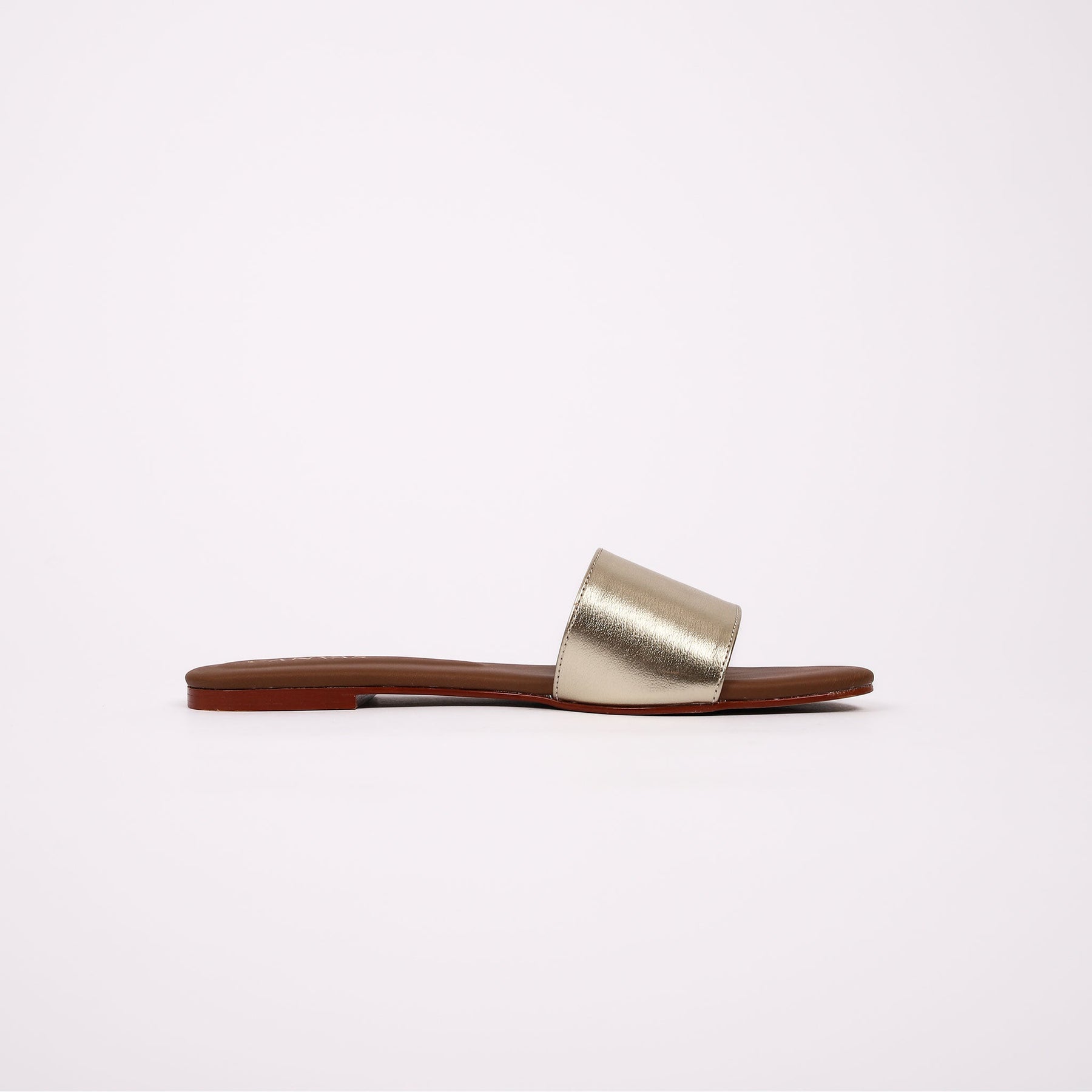 These gold wide-band slides bring glamour with ease. Zaroon is a celebration of golden