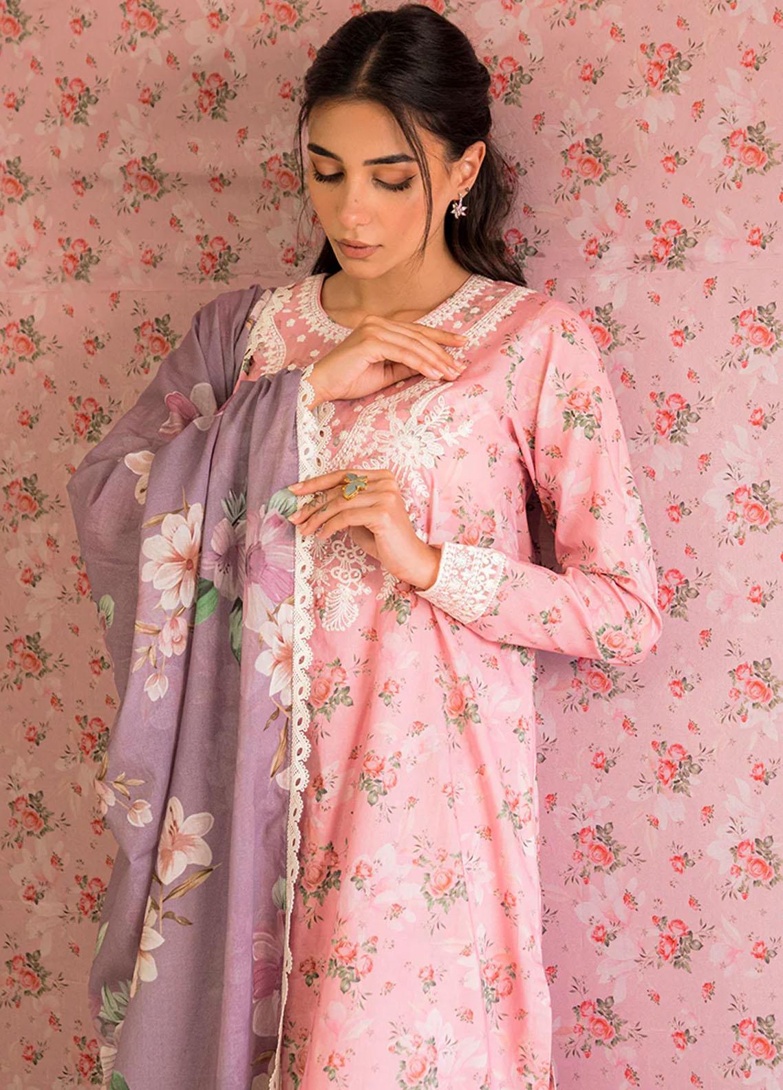 Cross Stitch Embroidered Lawn Suits Unstitched 3 Piece CS23PP D-08 Rose Gleam - Summer Collection