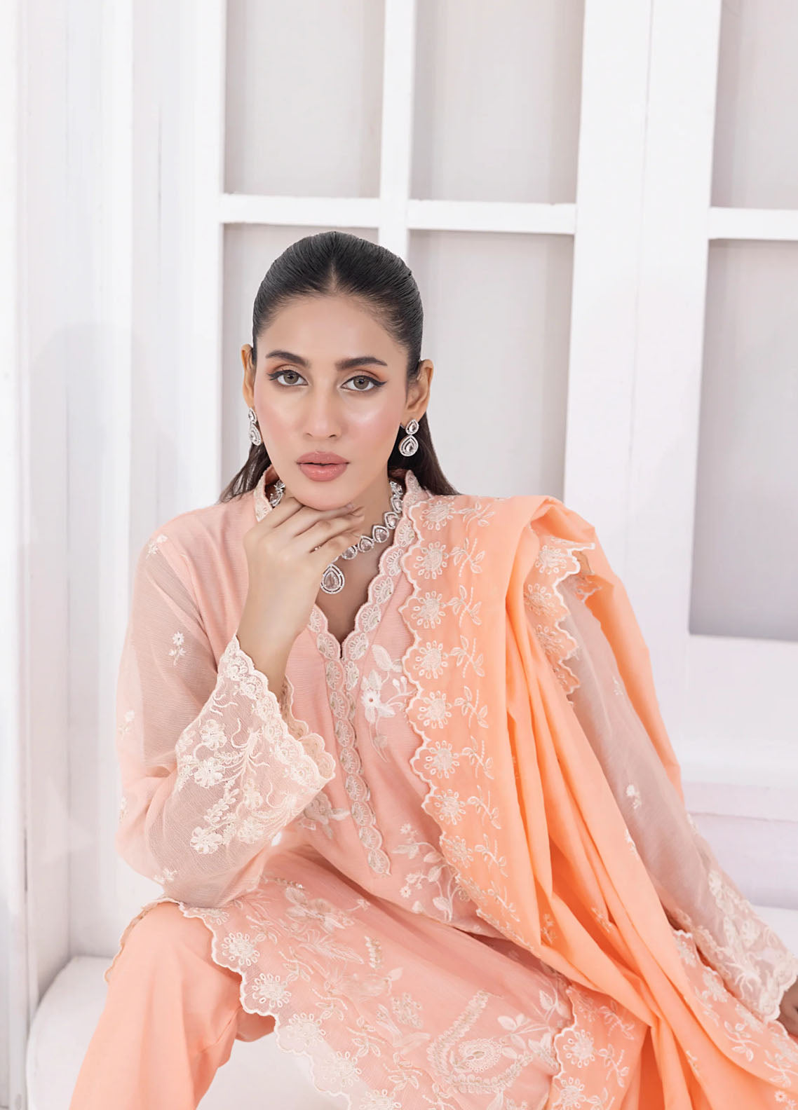 Embroidered Pret Khaddi Net 3 Piece Suit