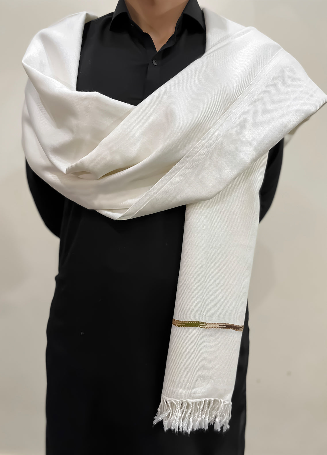 Mazham Wool Shawl Unstitched Off White Swati Thread - Winter Collection