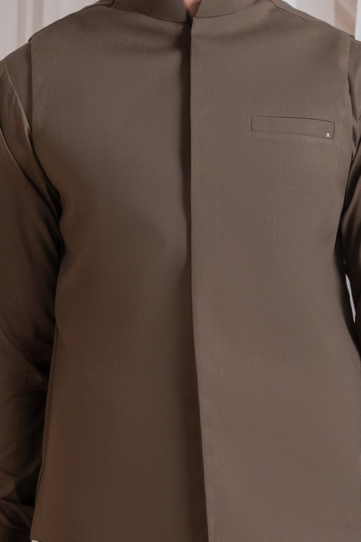 Muraqsh Ready To Wear Solids Cotton Men Light Brown Luxury Blended Waistcoat Straigth Cut MURBLBW - Summer Collection