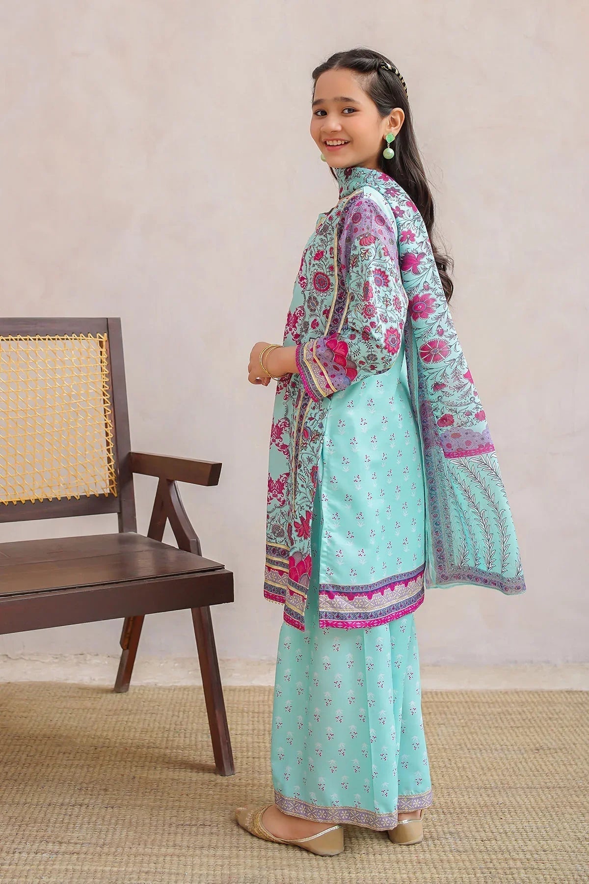 Bottom: Mint Digital Printed Swiss Lawn Dhaka Pants