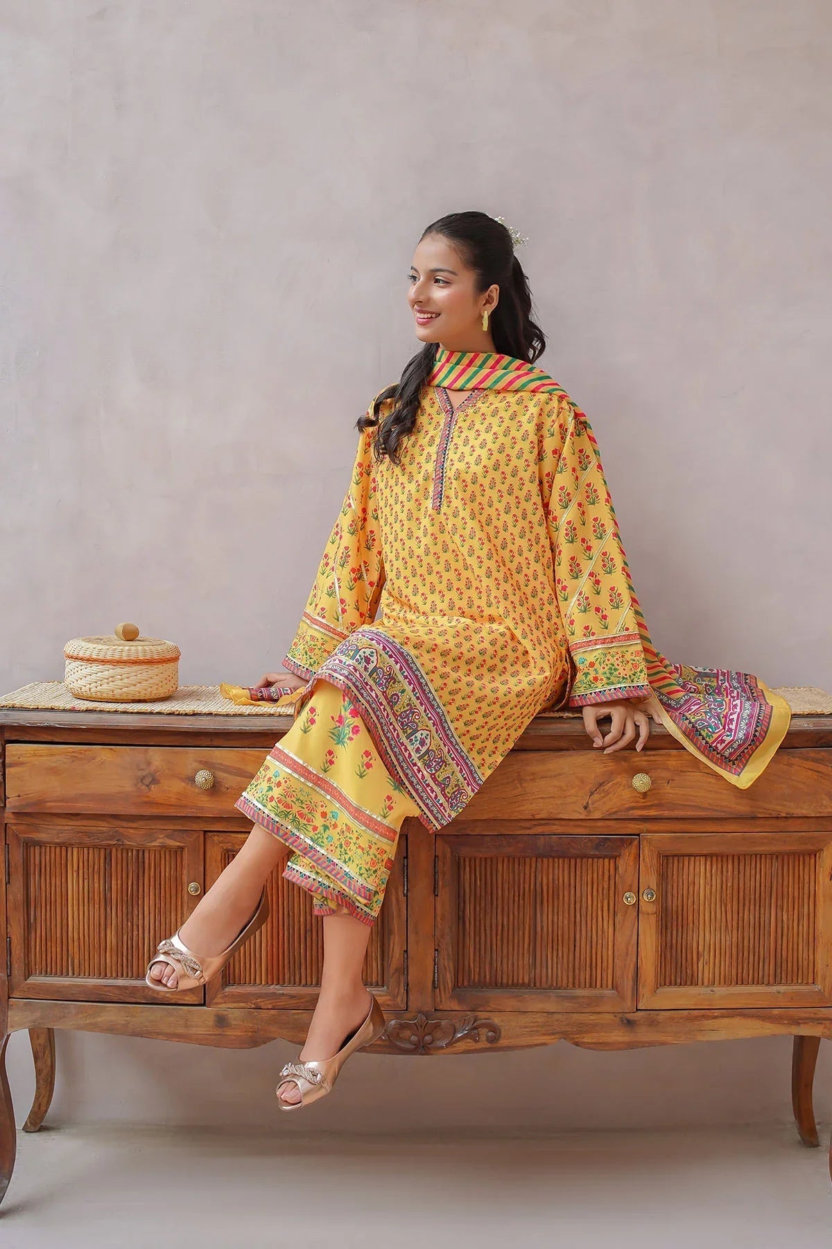 Bottom: Yellow Digital Printed Swiss Lawn Flared Pants