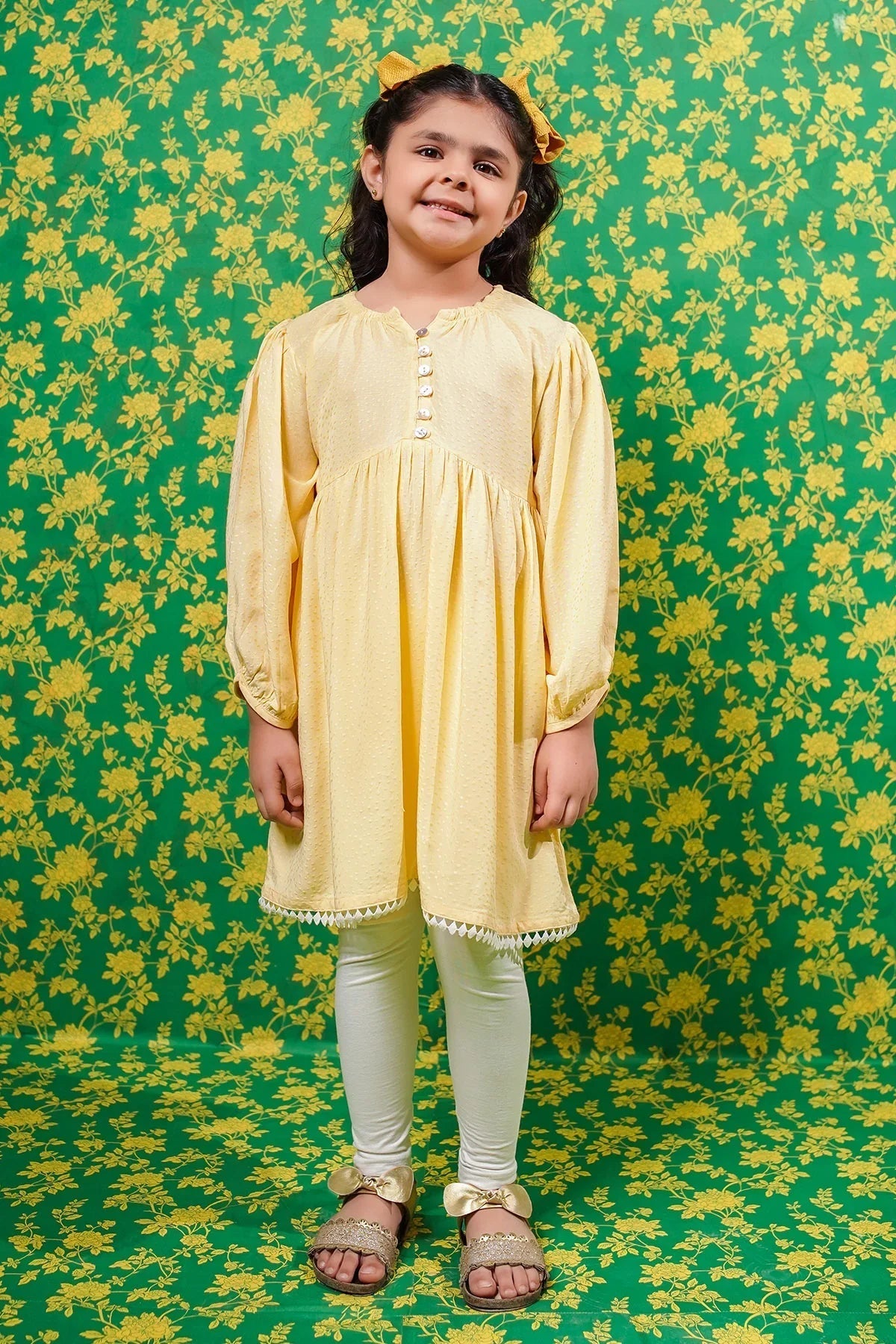 Yellow Broshia Cotton Kurta with Laces
