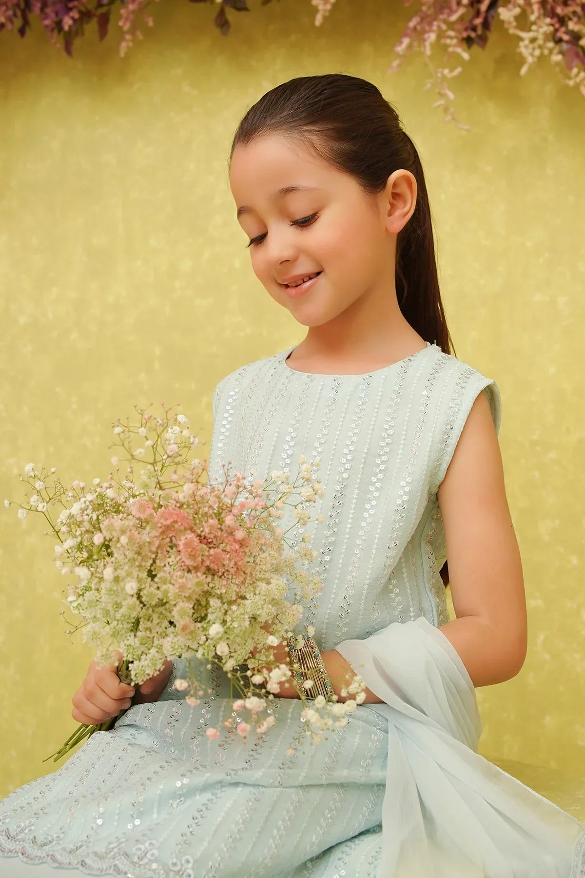 Top: Ice Blue Chiffon kurta with Embroidery and Malai Crepe Lining