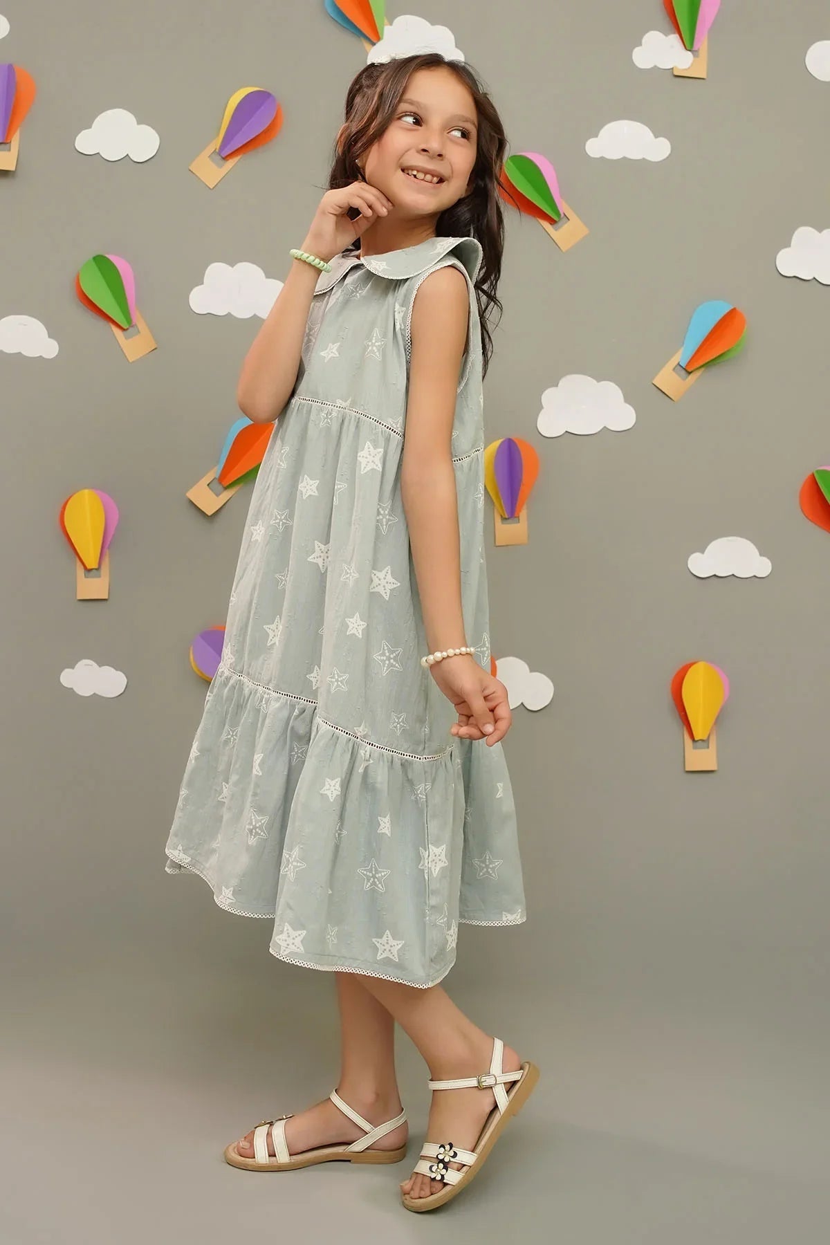 Ochre RTW Printed Girls 1 Piece Chambray Dress INWD-15 - Winter Collection