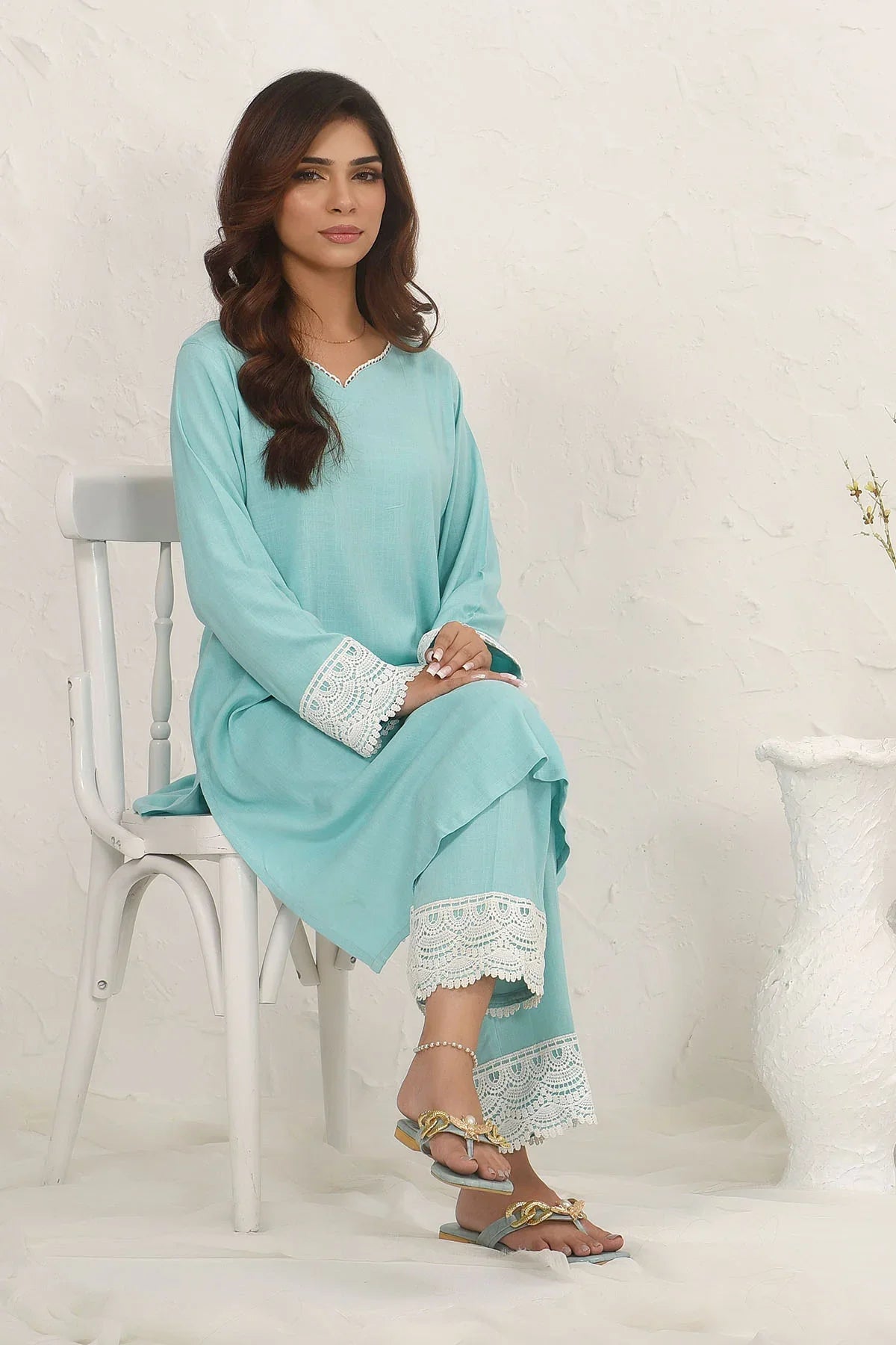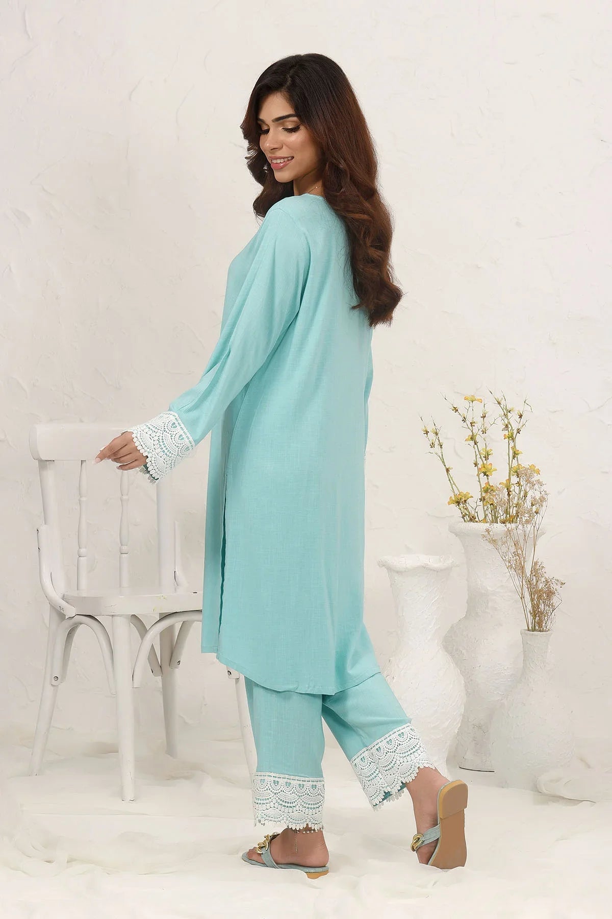 "Top: Sky Blue Irish Linen Kurta with Laces