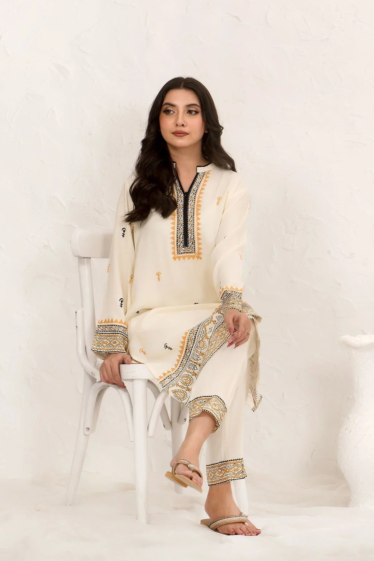 Top: Ivory White Cotton Crepe Block Printed Kurta