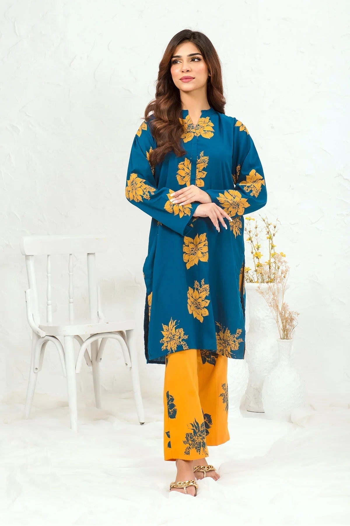 Bottom: Mustard Cotton Screen Printed Trouser