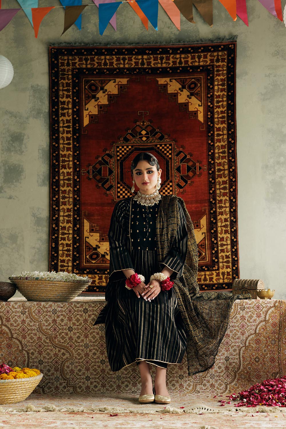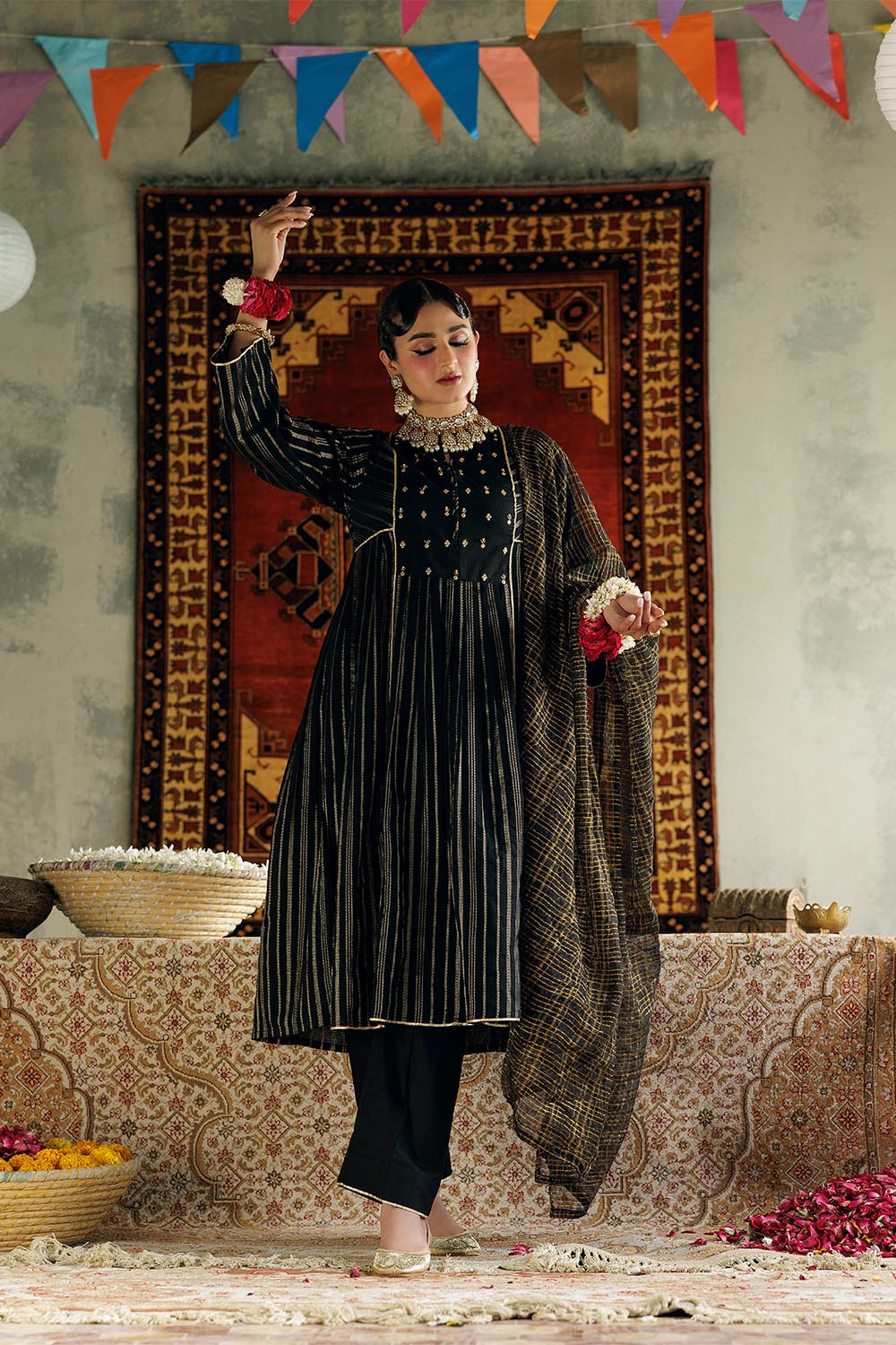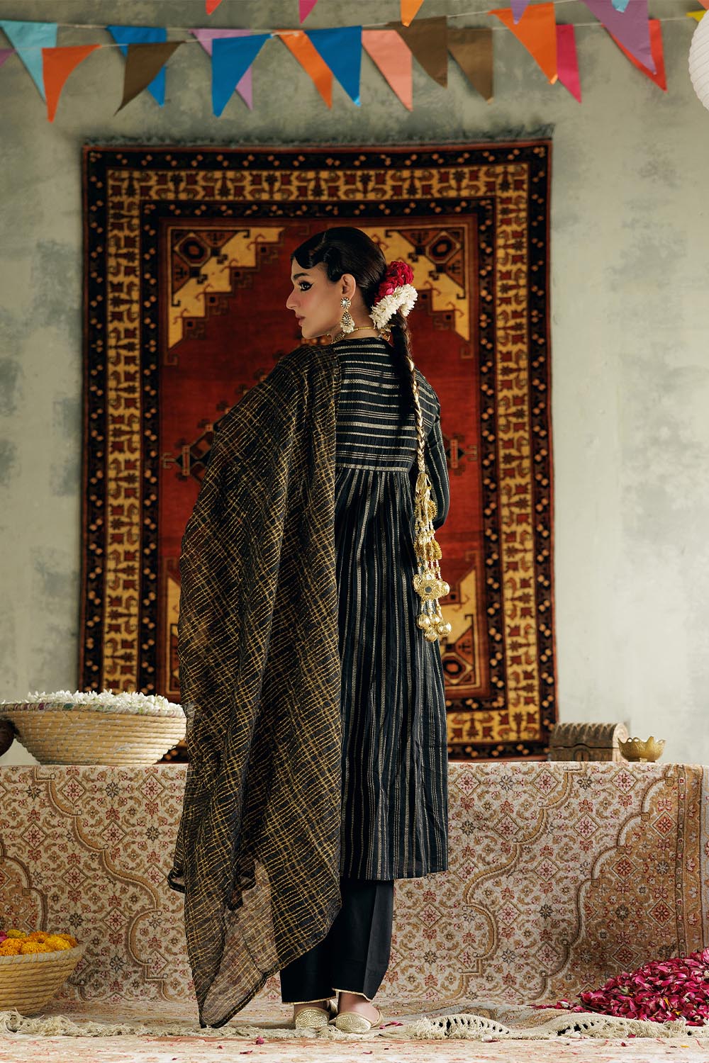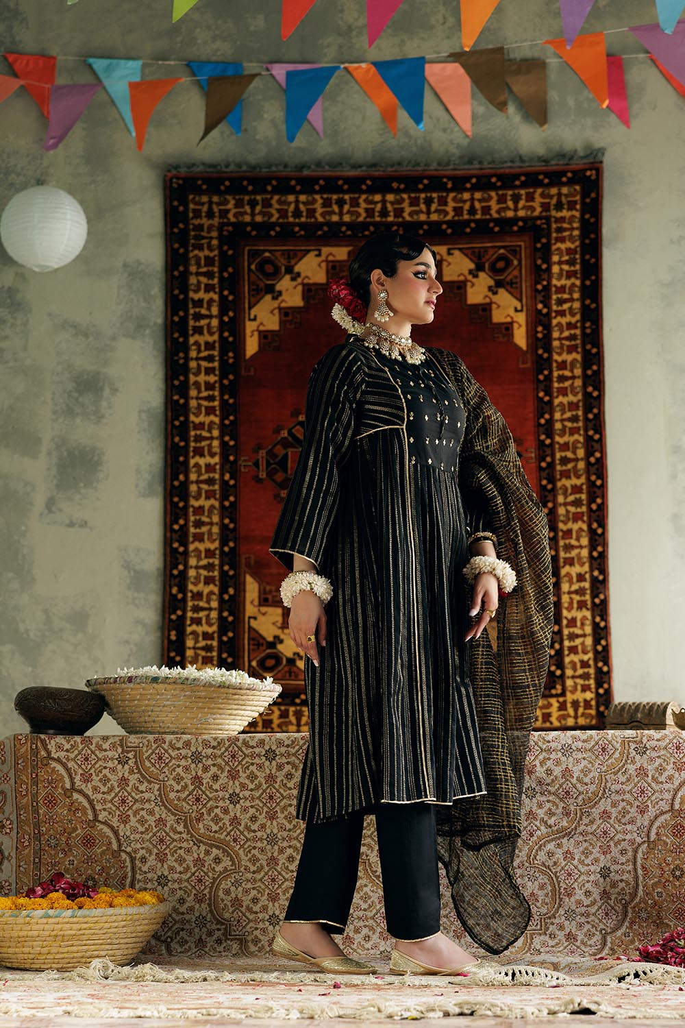 A line pleated body shirt, embellished with sequins and fancy lace. Paired with straight pants and fancy dupatta.