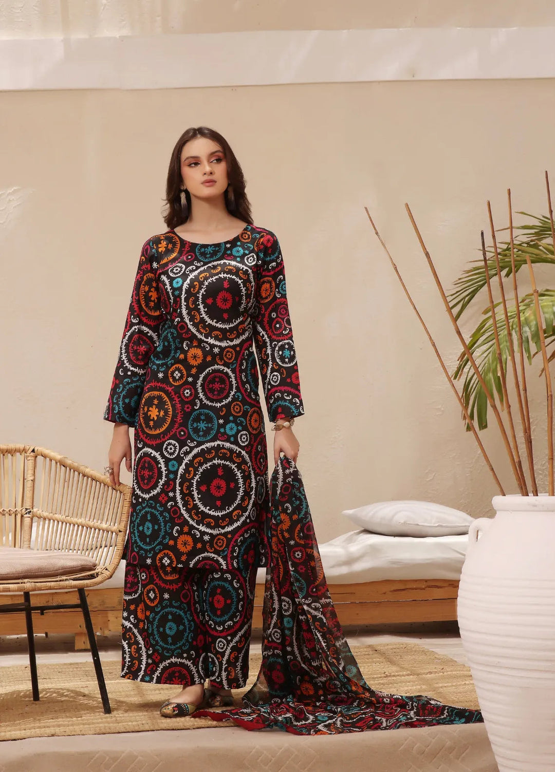 Rangeen Pret Printed Khaddar 2 Piece Suit Black Fusion