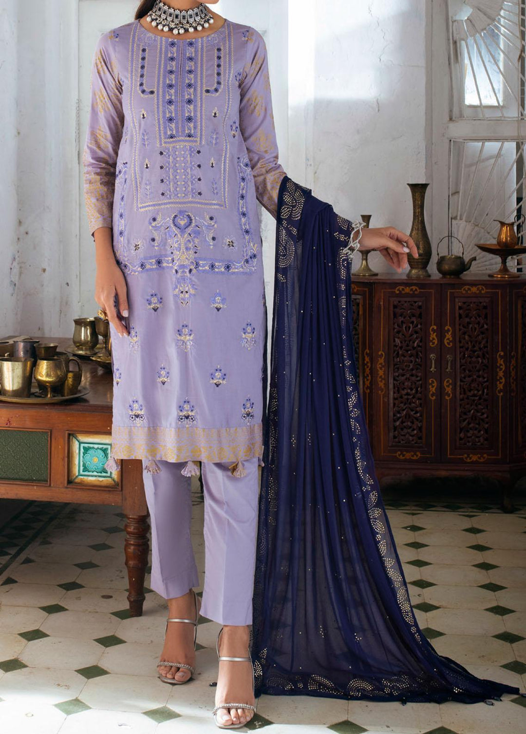 Mehrbano By Cross Stitch Embroidered Lawn Suits Unstitched 3 Piece CS22ML REGAL EMPIRE - Premium Collection