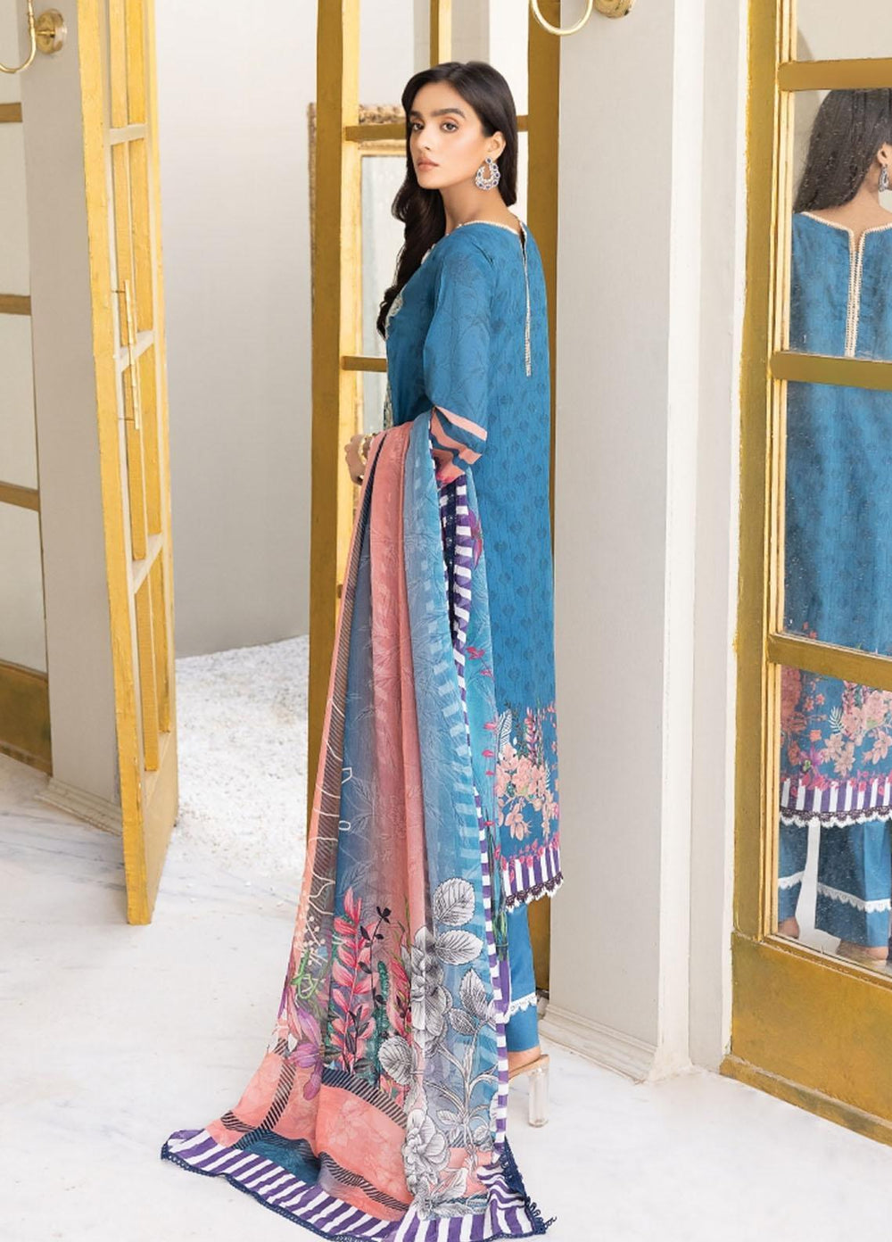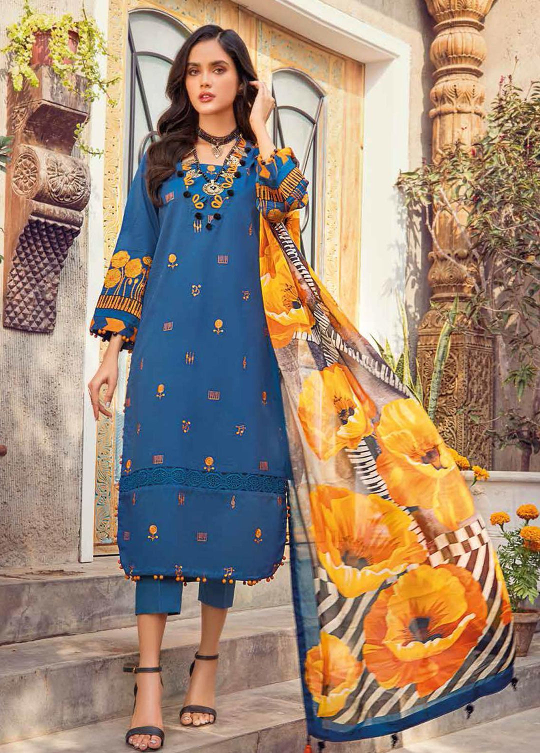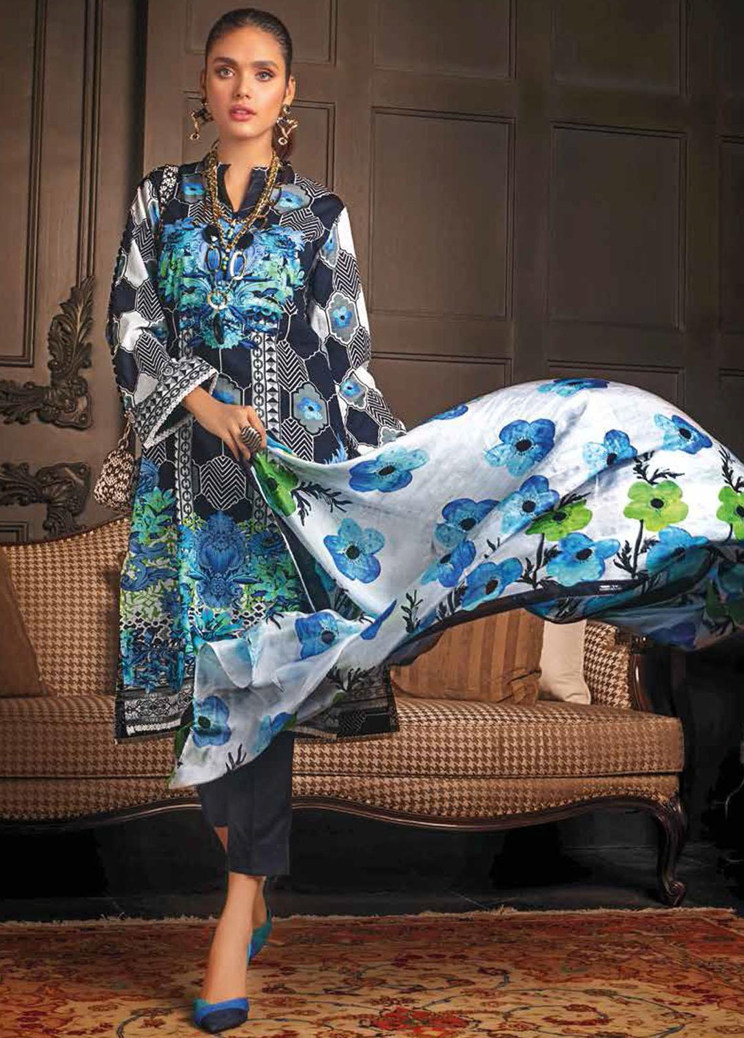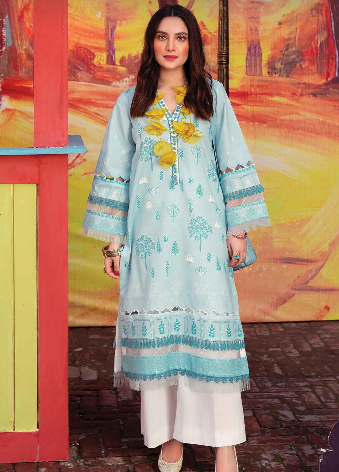 Cross Stitch Embroidered Lawn Suits Unstitched 3 Piece CS23PL D-13 Misty Blue - Eid Collection