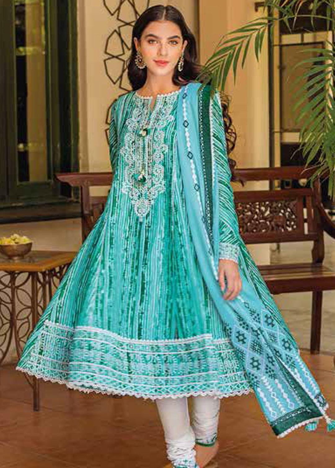 Roheenaz Embroidered Lawn Suits Unstitched 3 Piece RO22S-1 RNZ-02-B Aqua Haze - Summer Collection