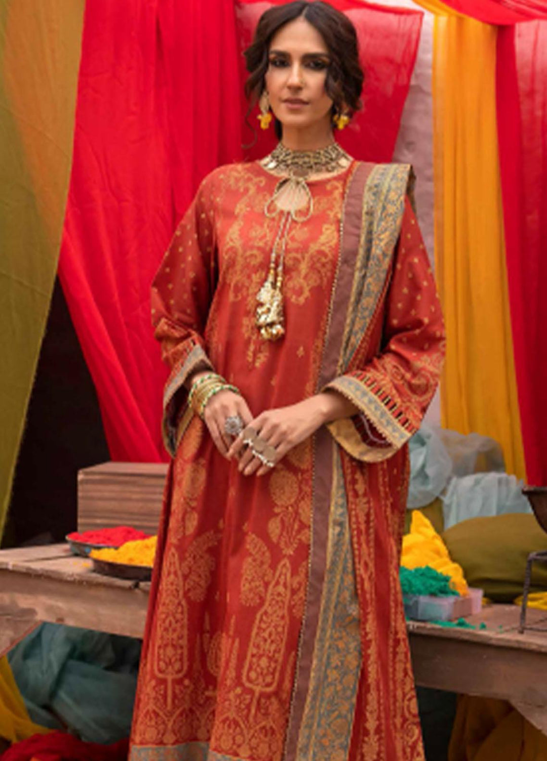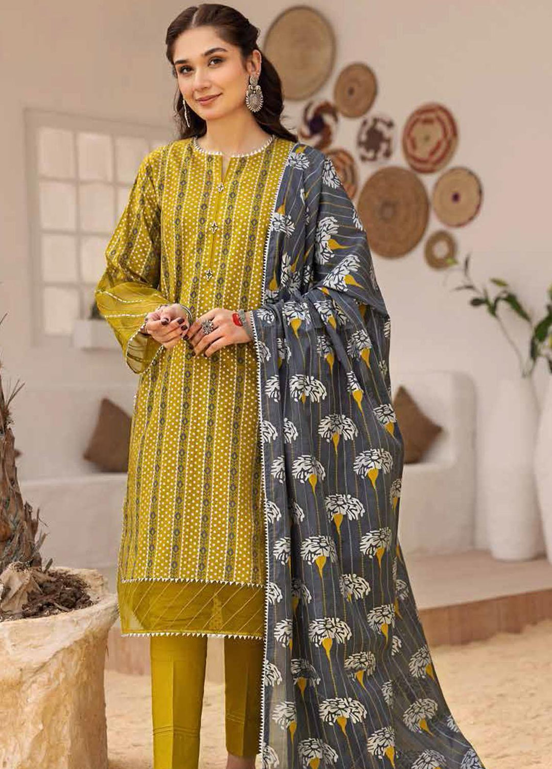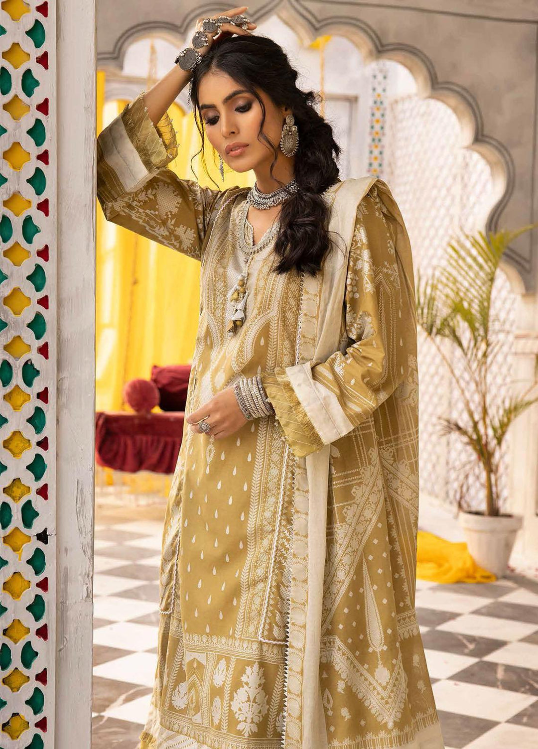 Mahiri By Cross Stitch Embroidered Lawn Suits Unstitched 3 Piece CS23M-V2 04 Mustard Ceylon - Summer Collection