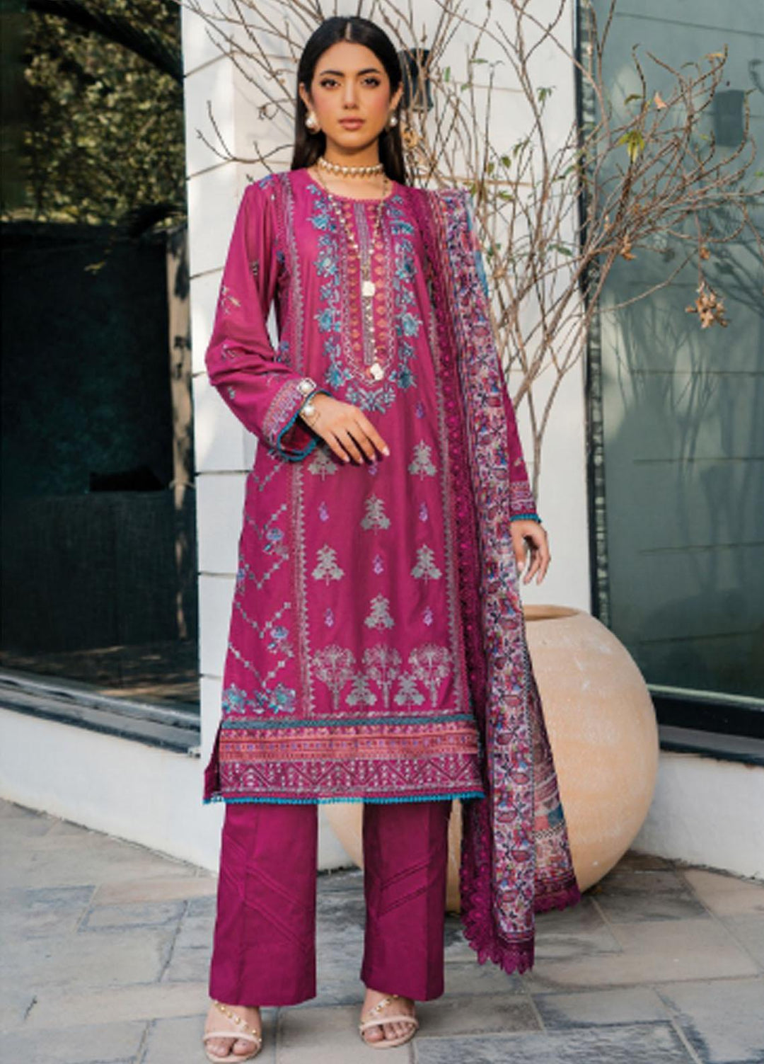Mahiri By Cross Stitch Embroidered Lawn Suits Unstitched 3 Piece CS23M-V2 03 Misty Lilac - Summer Collection