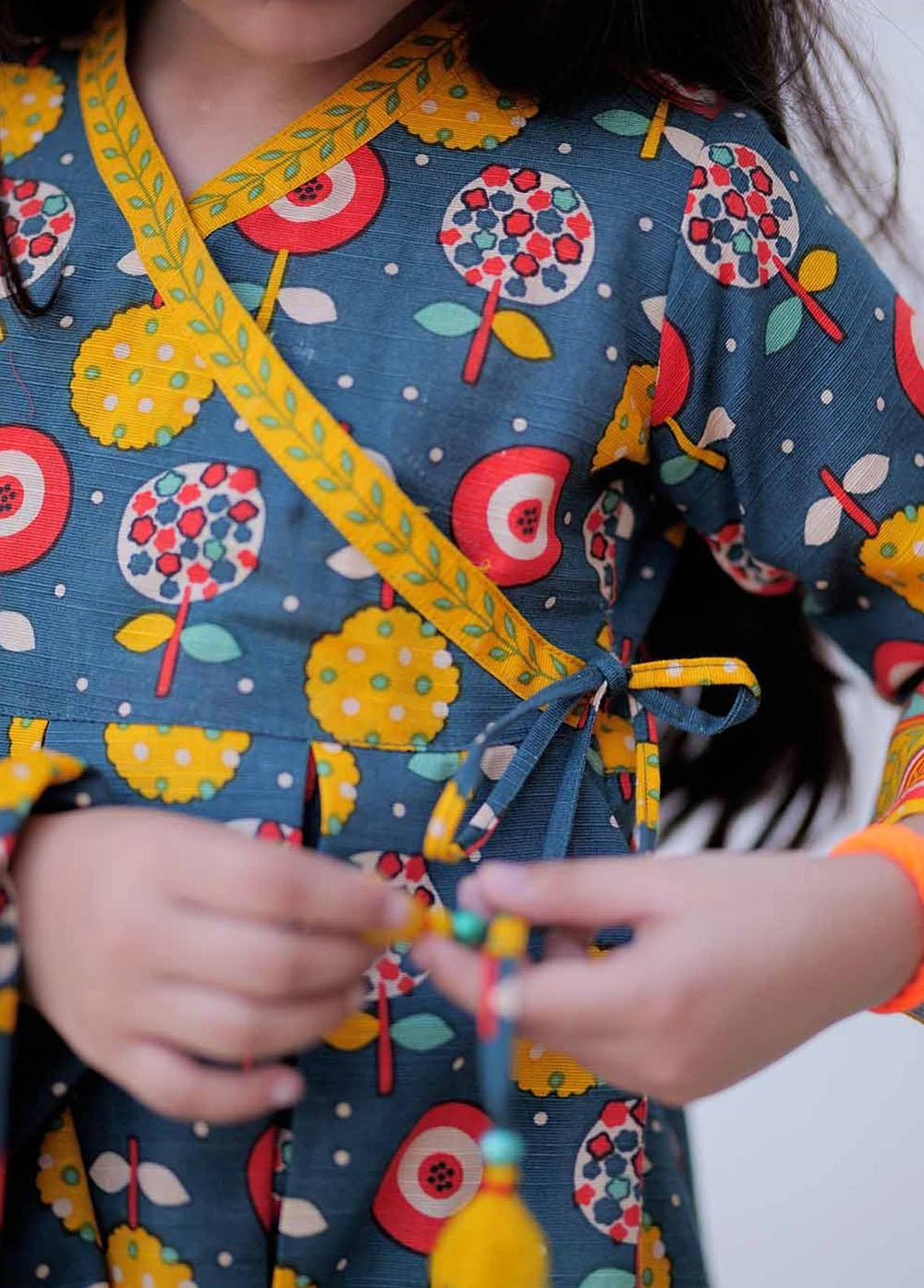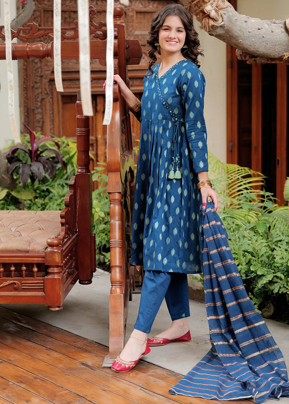 Senorita Cotton Casual 3 Piece Suit for Girls - GBD-02613-BLU/GLD