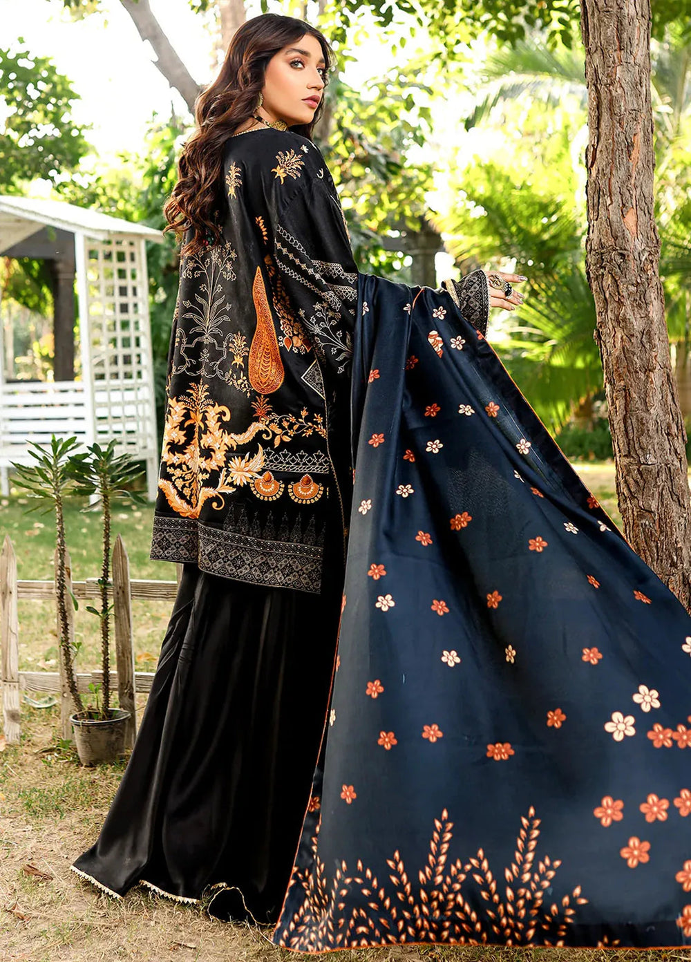 Merakish By Shahzeb Textiles Embroidered Chiffon Suits Unstitched 3 Piece ST23MK-V9 Royal Black - Luxury Collection