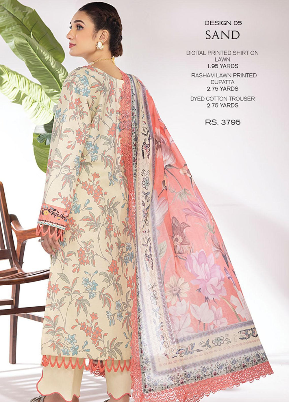 Rang Rasiya Printed Lawn Suits Unstitched 3 Piece RR23SB D-05 Sand - Summer Collection