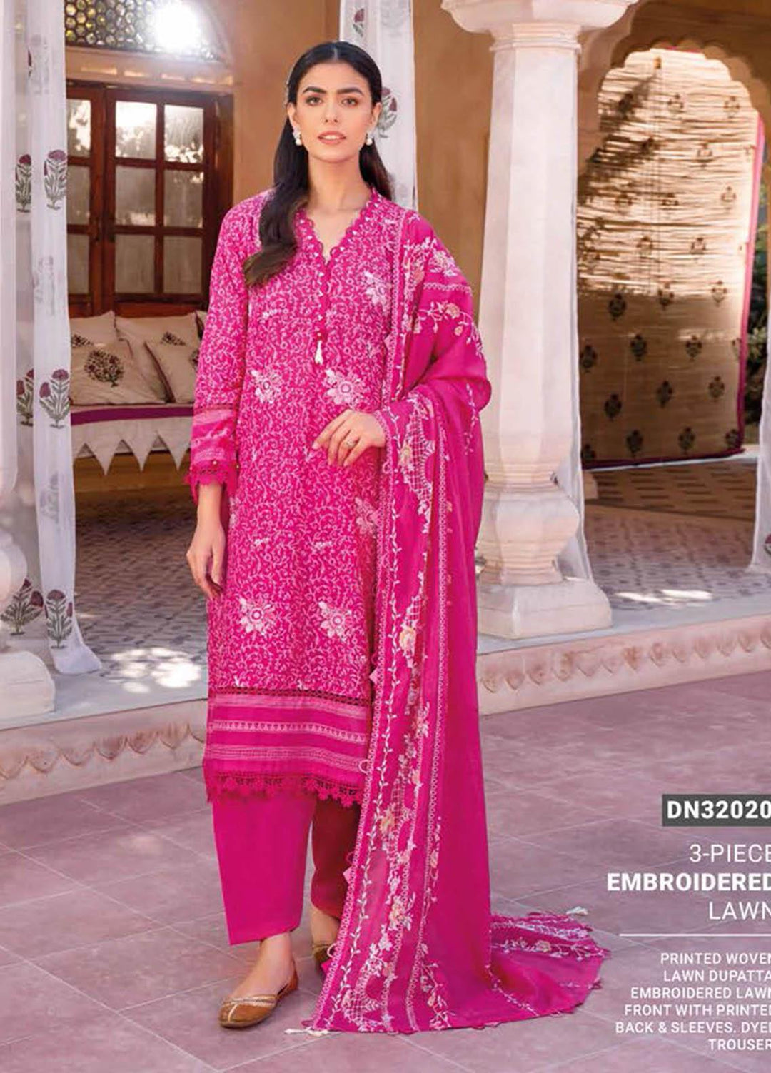 Essential Lawn By Gul Ahmed Embroidered Lawn Suits Unstitched 3 Piece GA23E DN-32020 - Summer Collection