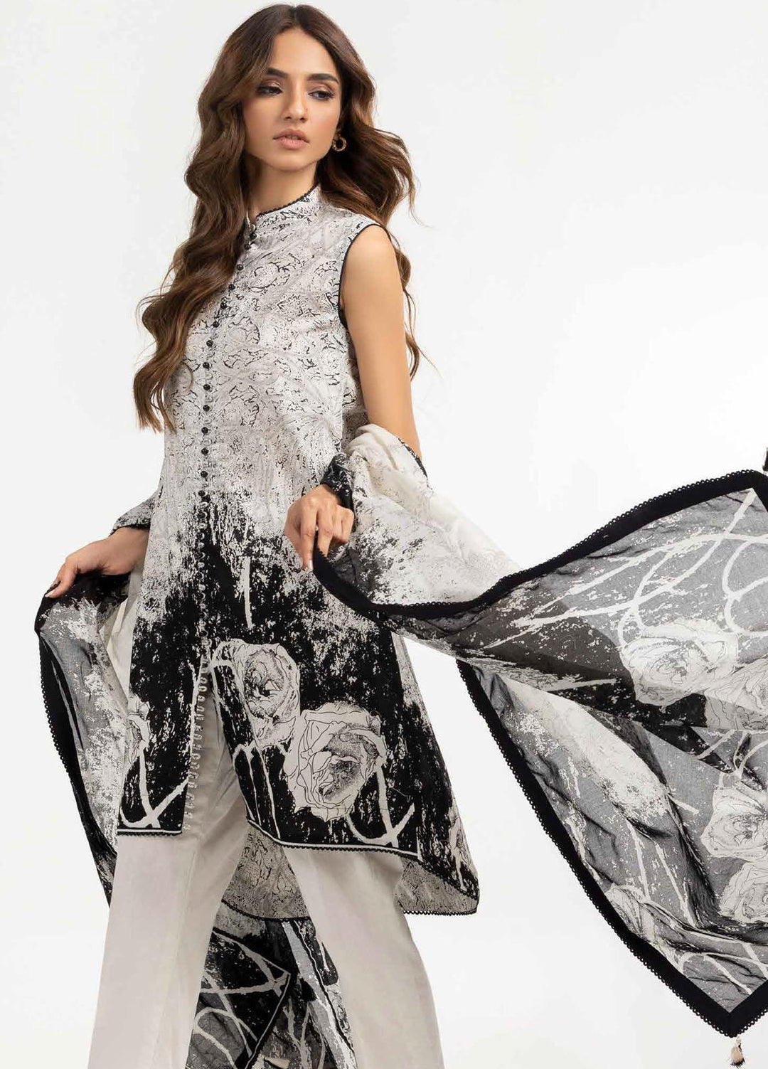 Ambrosia Black & White By Gul Ahmed Printed Lawn Suits Unstitched 2 Piece GA22A BT-22006 - Black & White Collection