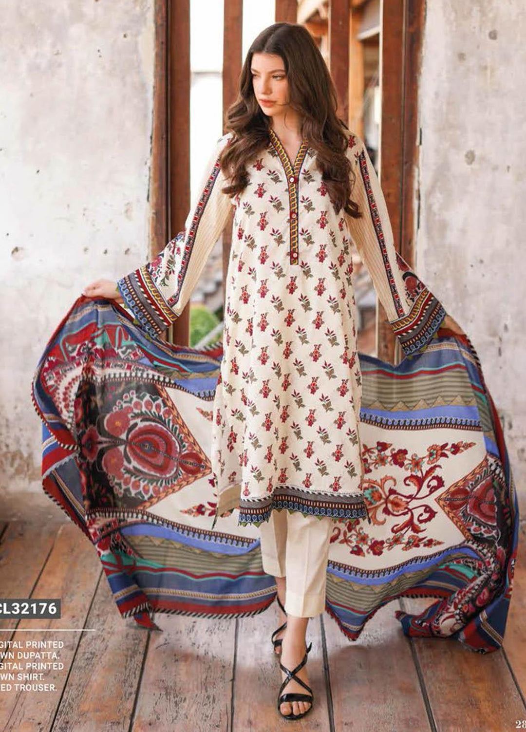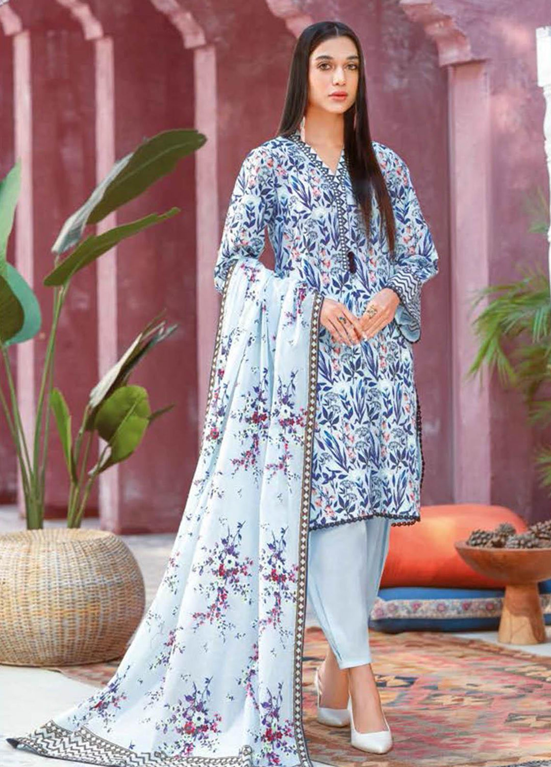 Daily Lawn By Cross Stitch Printed Lawn Suits Unstitched 3 Piece CS23D 14 TORI DREAM - Summer Collection