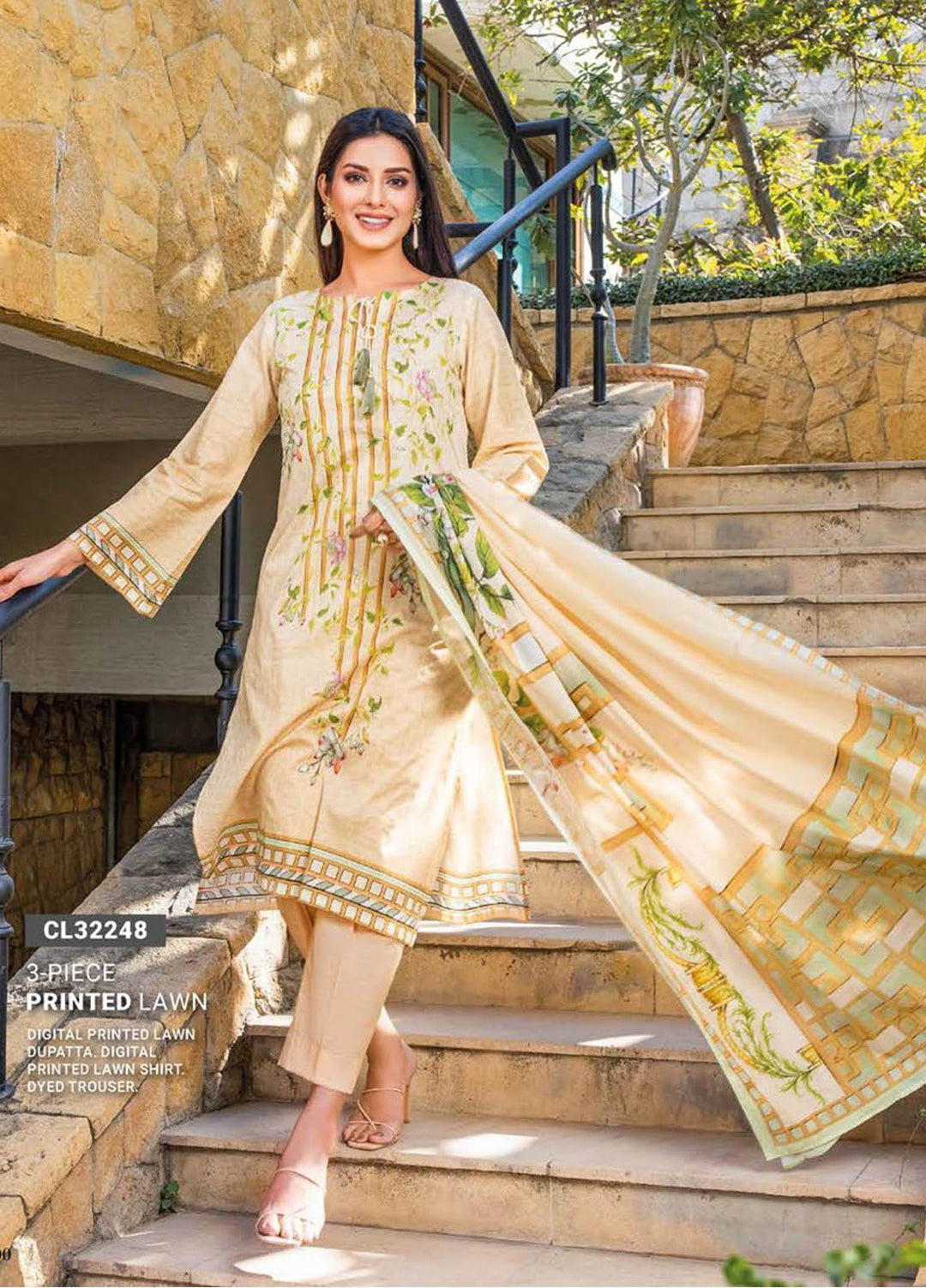 Daily Lawn By Cross Stitch Printed Lawn Suits Unstitched 3 Piece CS23D 03 CHALKY MUSTARD - Summer Collection