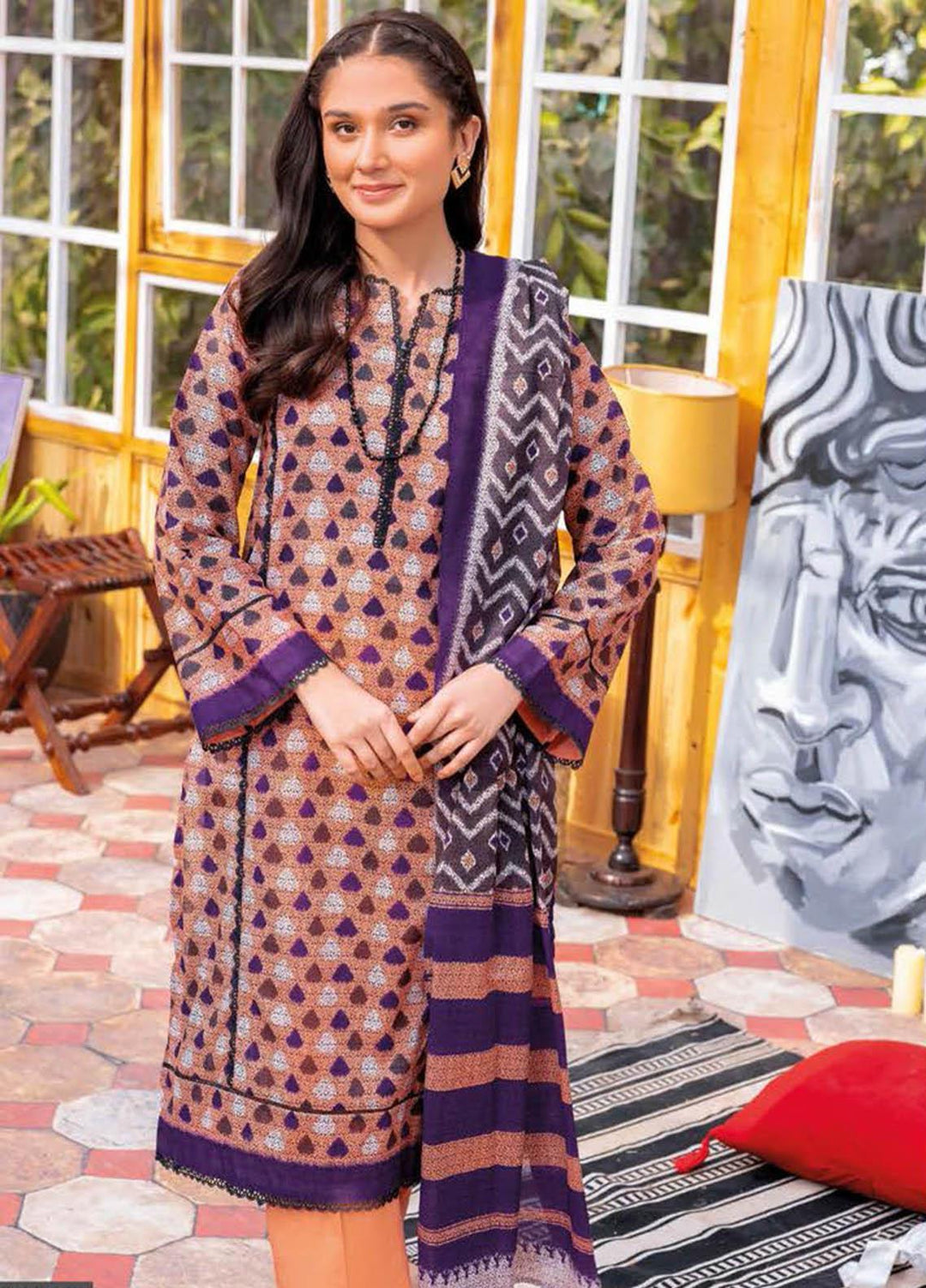 Daily Lawn By Cross Stitch Printed Lawn Suits Unstitched 3 Piece CS23D 08 MAUVE HUE - Summer Collection