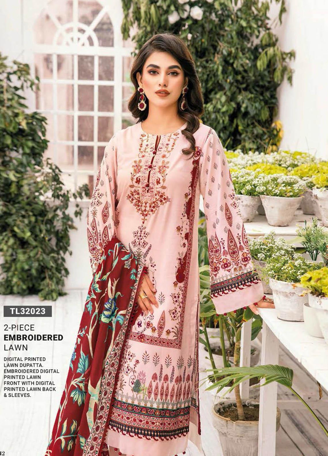 Essential Lawn By Gul Ahmed Embroidered Lawn Suits Unstitched 2 Piece GA23E TL-32023 - Summer Collection