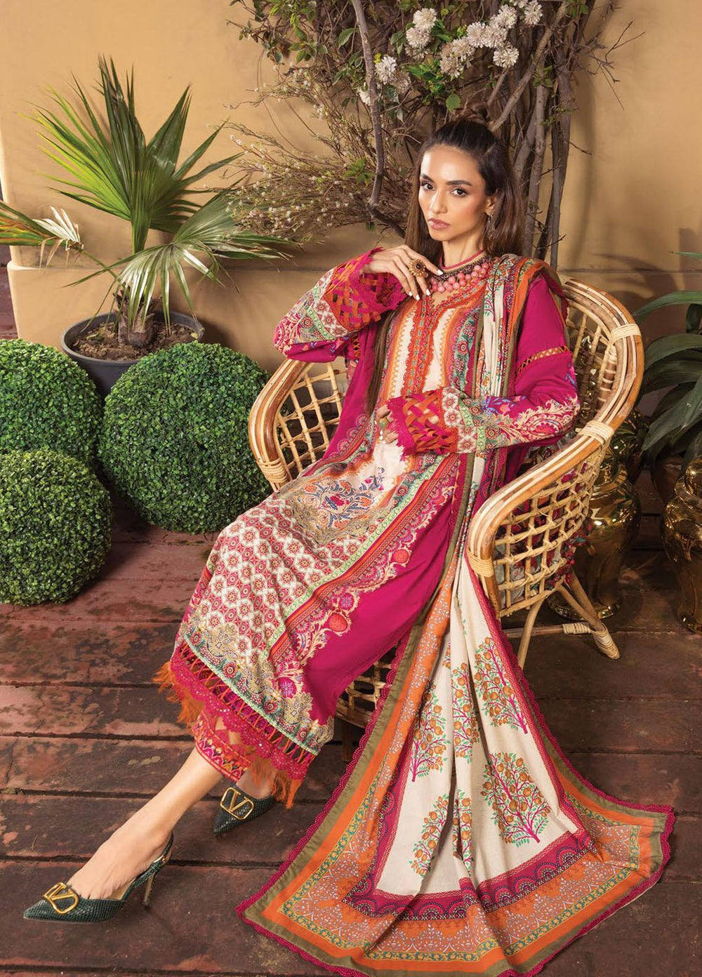 Mahiri By Cross Stitch Embroidered Lawn Suits Unstitched 3 Piece CS22M 04 Cherry Aster - Summer Collection
