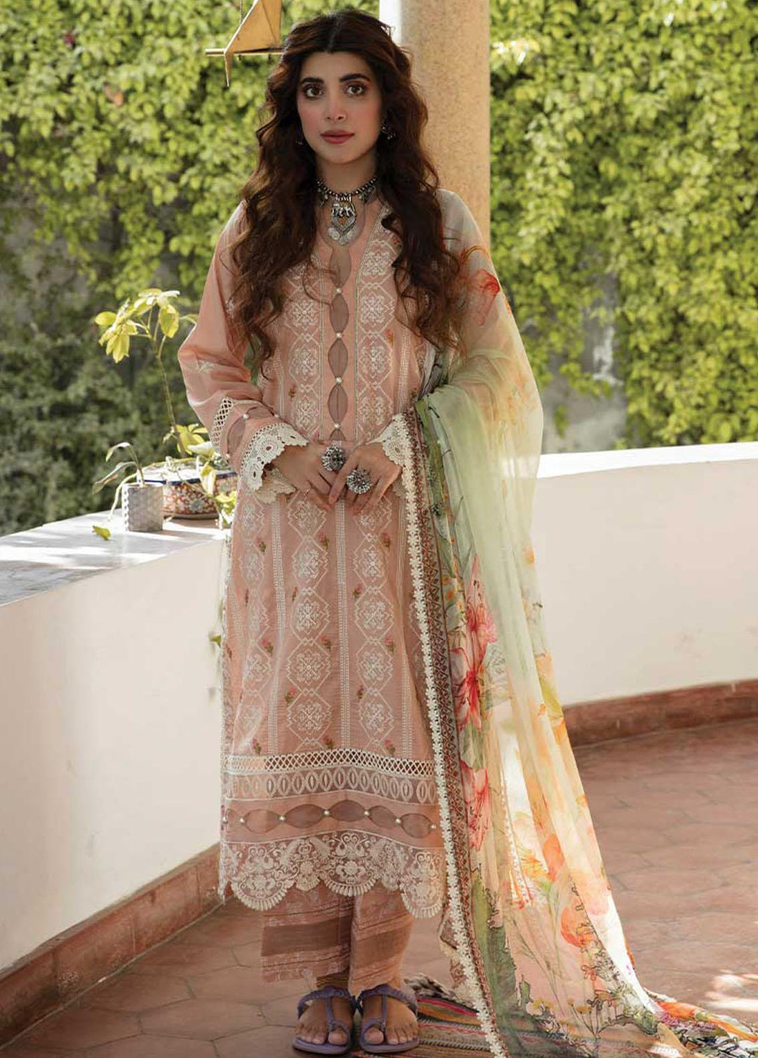 Farasha Embroidered Lawn Suit Unstitched 3 Piece FSH22FL 05 Pink Sorbet - Festive Collection
