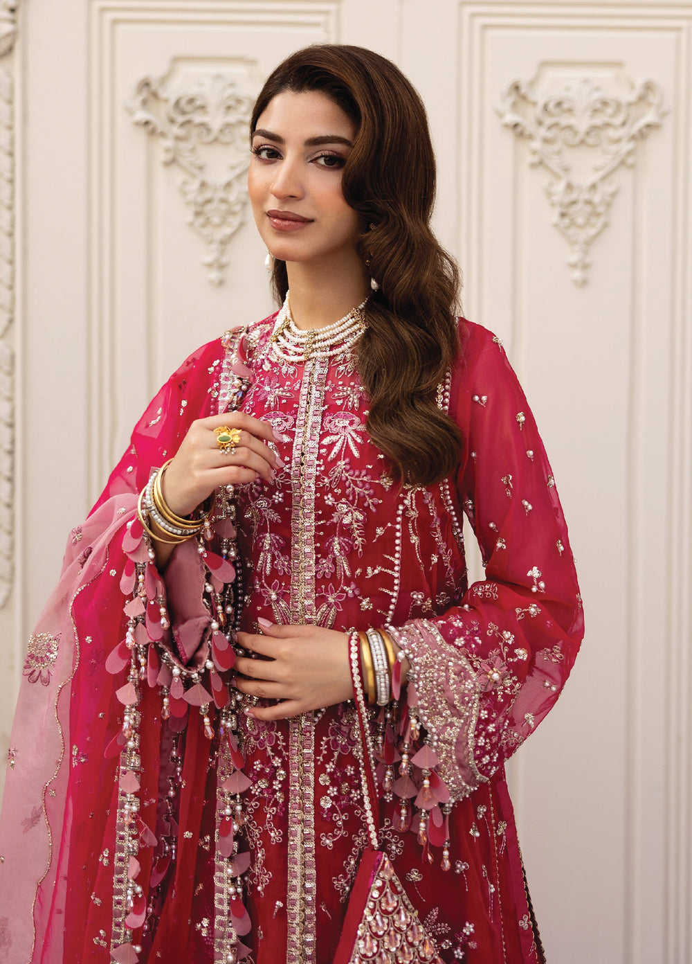 The assortment brings together premium unstitched wedding wear in Pakistan, ranging from formal wedding suits to versatile designs suitable for mehndi, dholki, nikah and wedding parties. With options crafted in chiffon, organza, silk blends and other luxury materials, these unstitched wedding suits for women allow flexibility in styling while maintaining a formal, festive look.