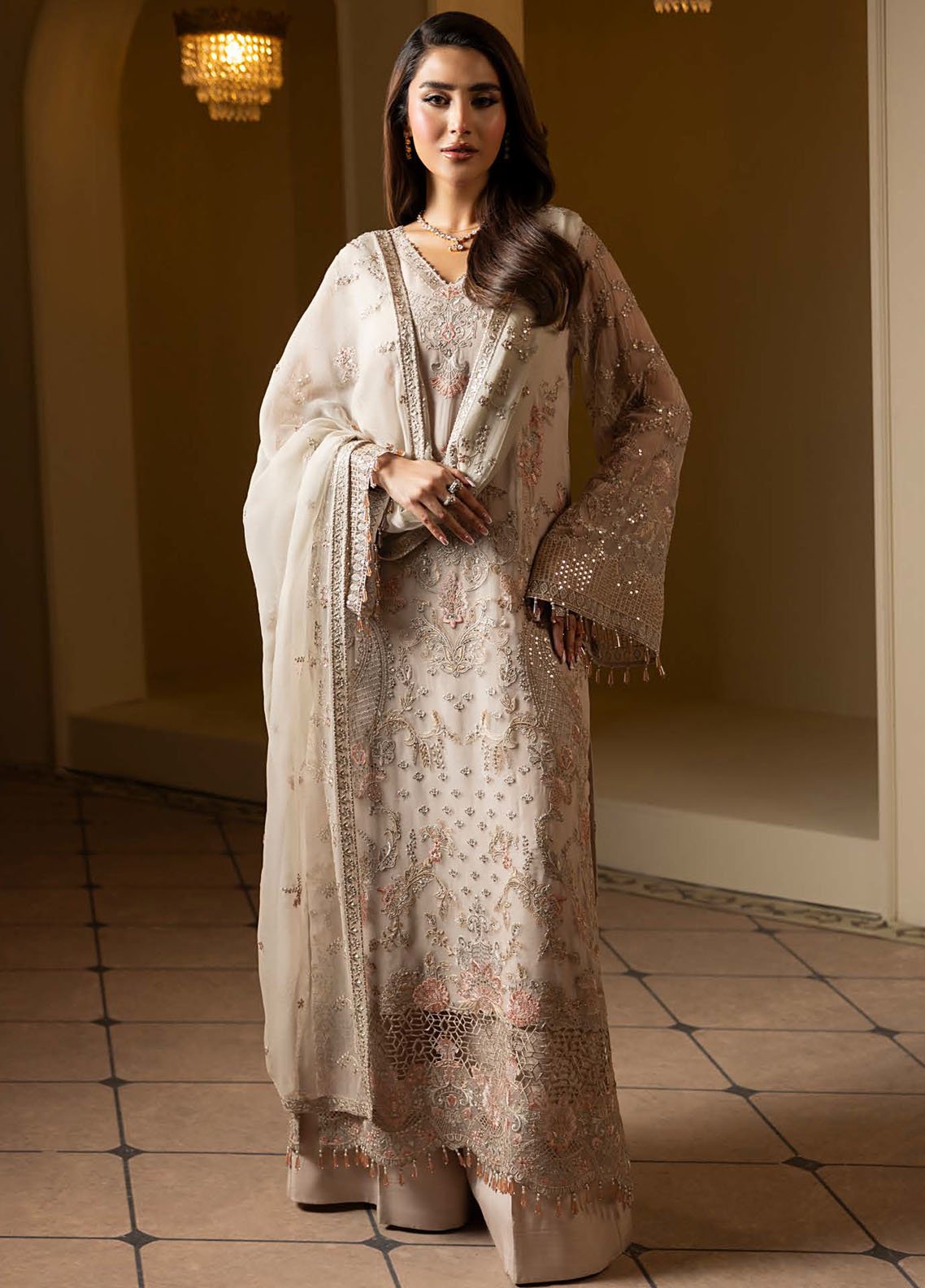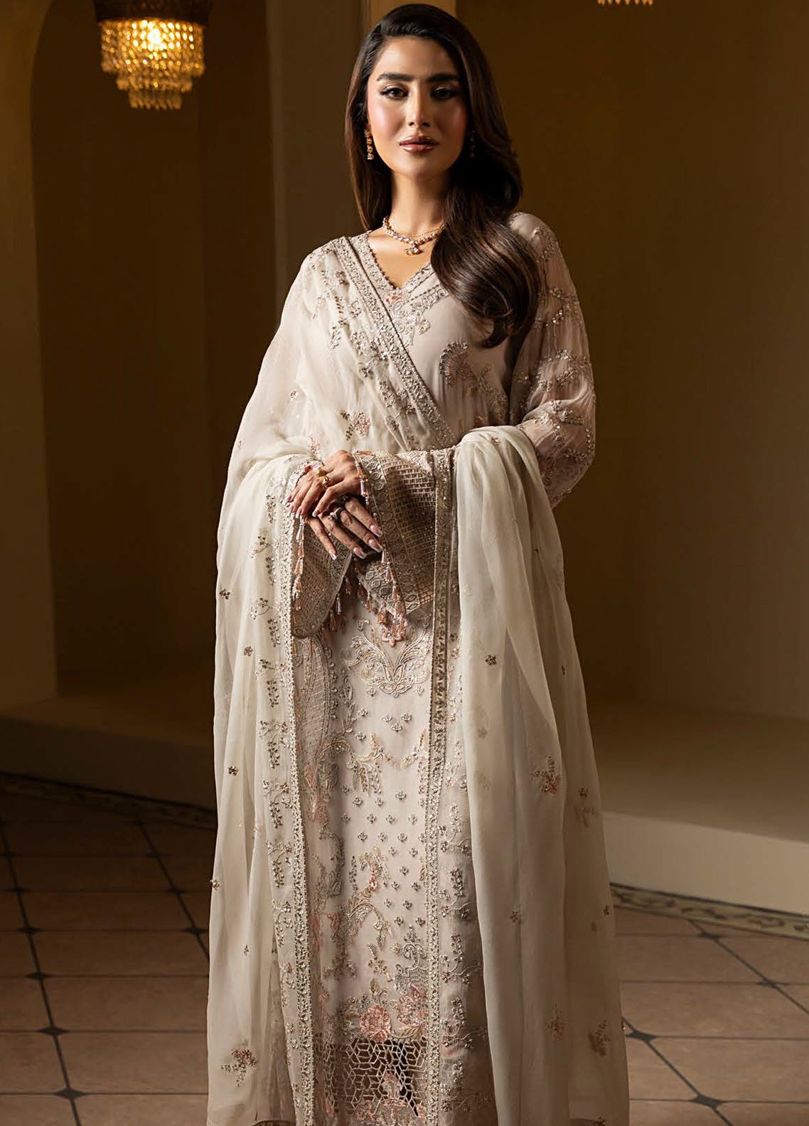 Aashnai by Lavish Embroidered Chiffon Suits Unstitched 3 Piece LVP24AC D-09 Snowfall Dreams - Formals Collection
